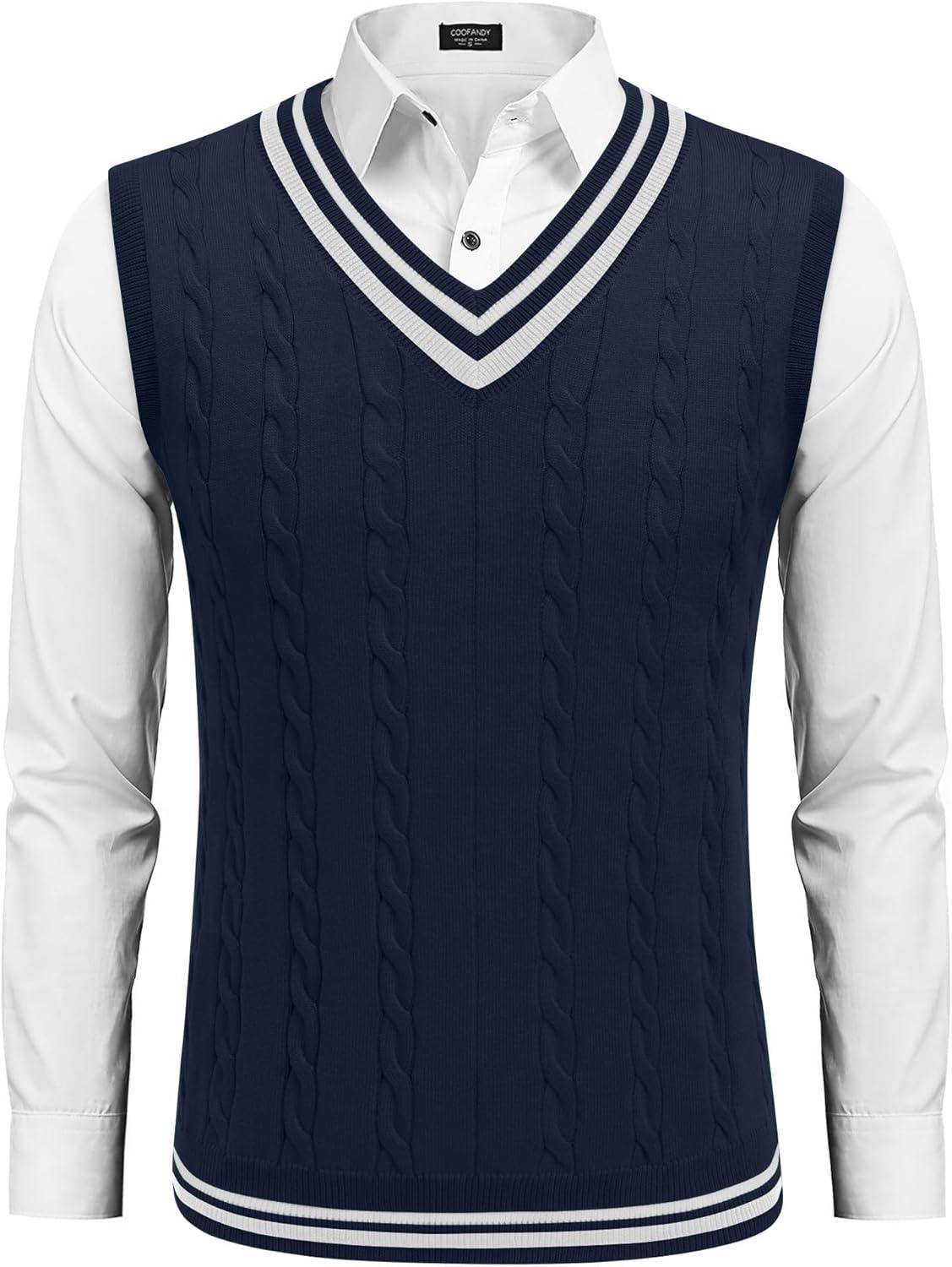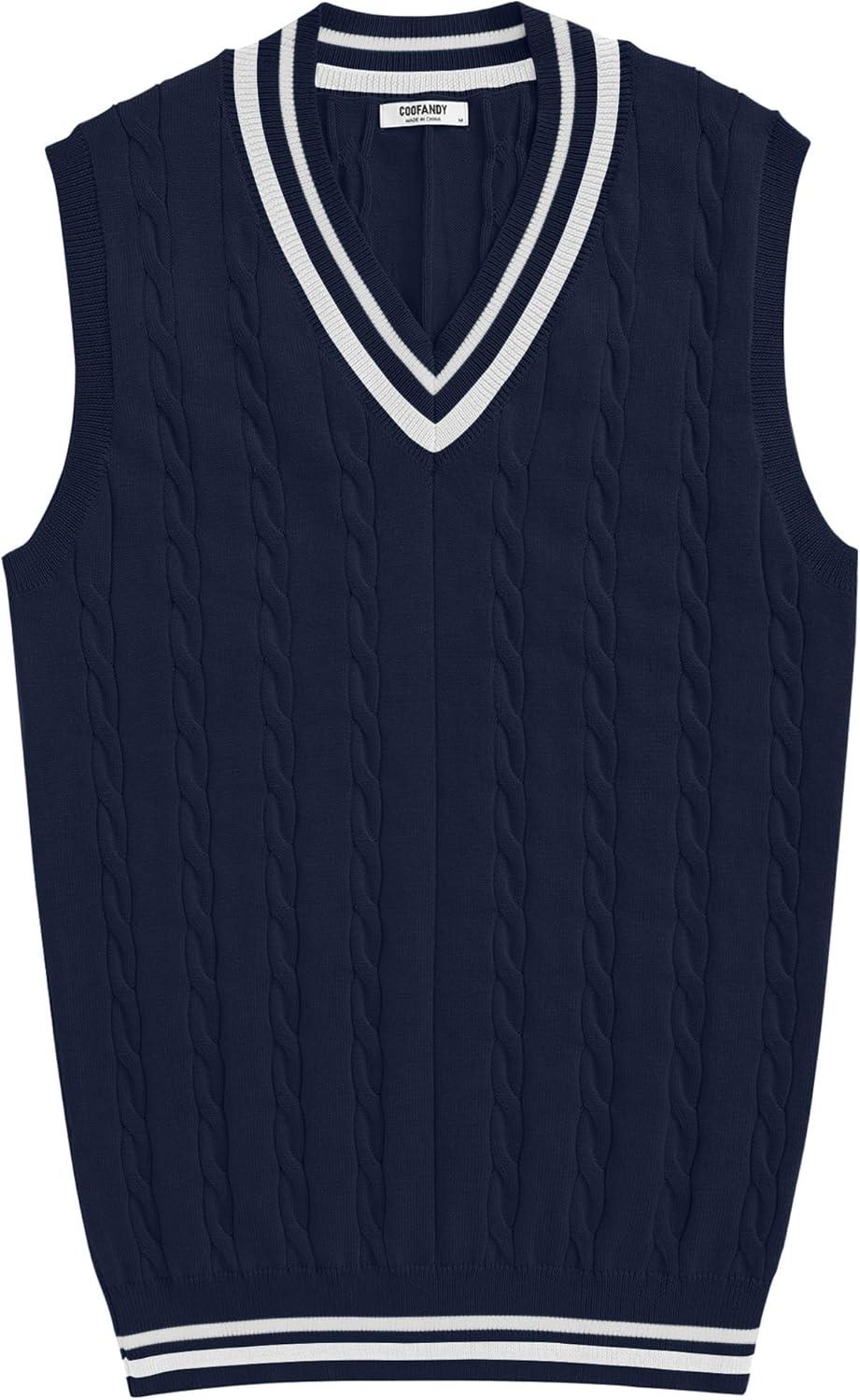 Be the first to review “COOFANDY Men’s Sweater Vest V Neck Casual Sleeveless Pullover Striped Cable Knit Sweater Vest(Navy Blue & White Stripe)” Cancel reply
