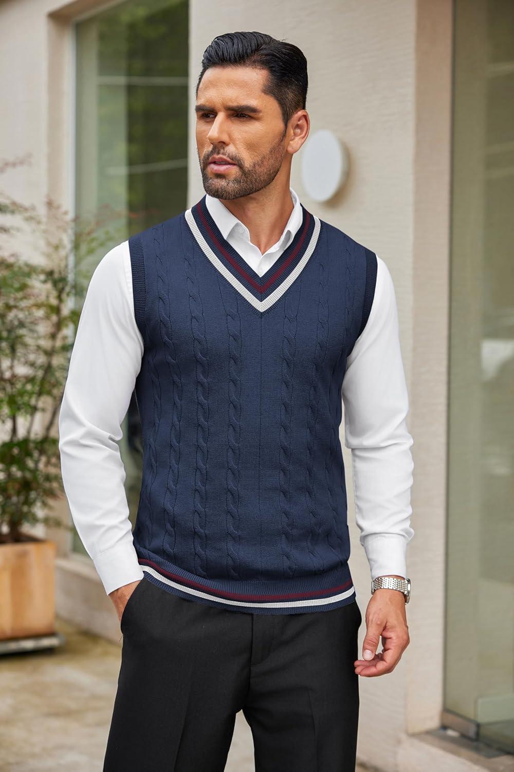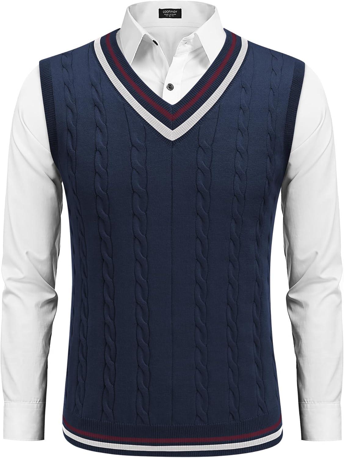 Be the first to review “COOFANDY Men’s Sweater Vest V Neck Casual Sleeveless Pullover Striped Cable Knit Sweater Vest(Red & Wihte Stripe)” Cancel reply