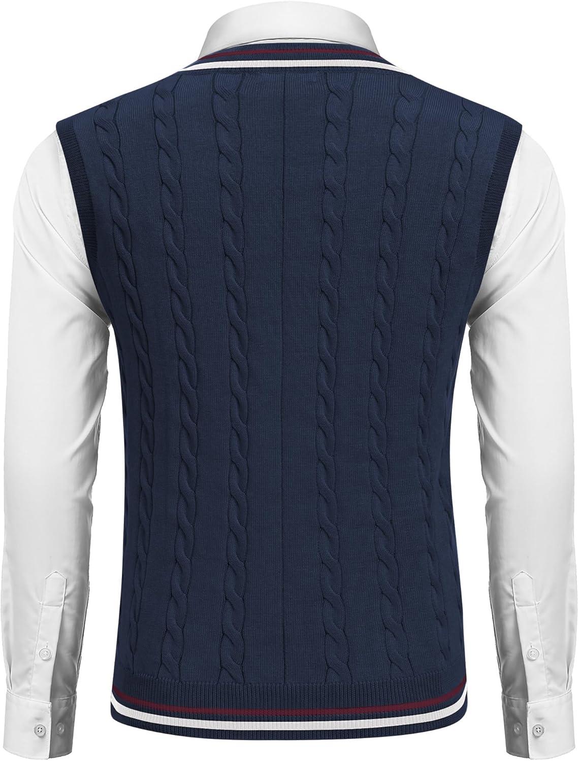 COOFANDY Men’s Sweater Vest V Neck Casual Sleeveless Pullover Striped Cable Knit Sweater Vest(Red & Wihte Stripe)