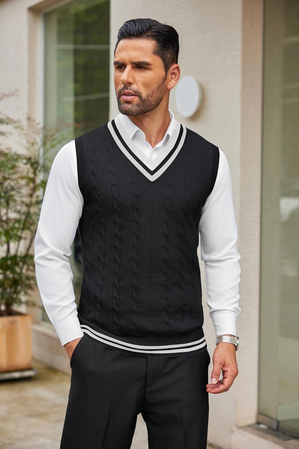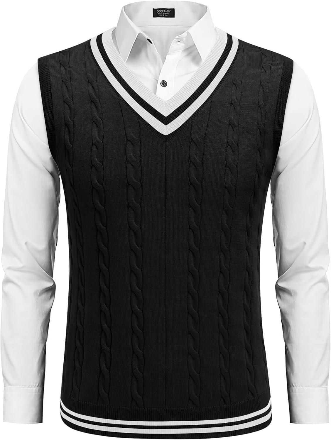 Be the first to review “COOFANDY Men’s Sweater Vest V Neck Casual Sleeveless Pullover Striped Cable Knit Sweater Vest(White Stripe)” Cancel reply