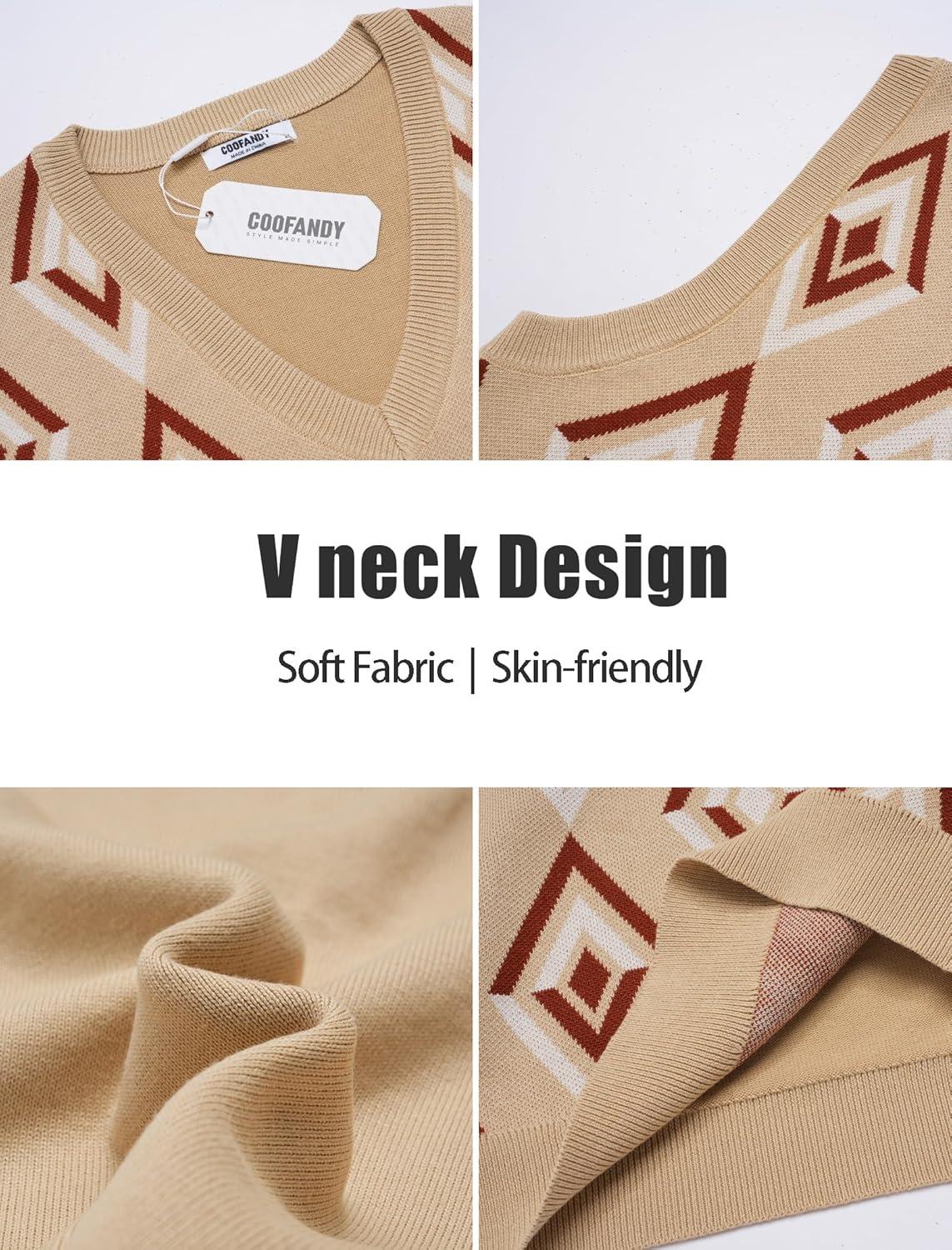 COOFANDY Men’s Sweater Vest V Neck Sleeveless Sweater Slim Fit Casual Knitted Pullover Sweater(Argyle Khaki)