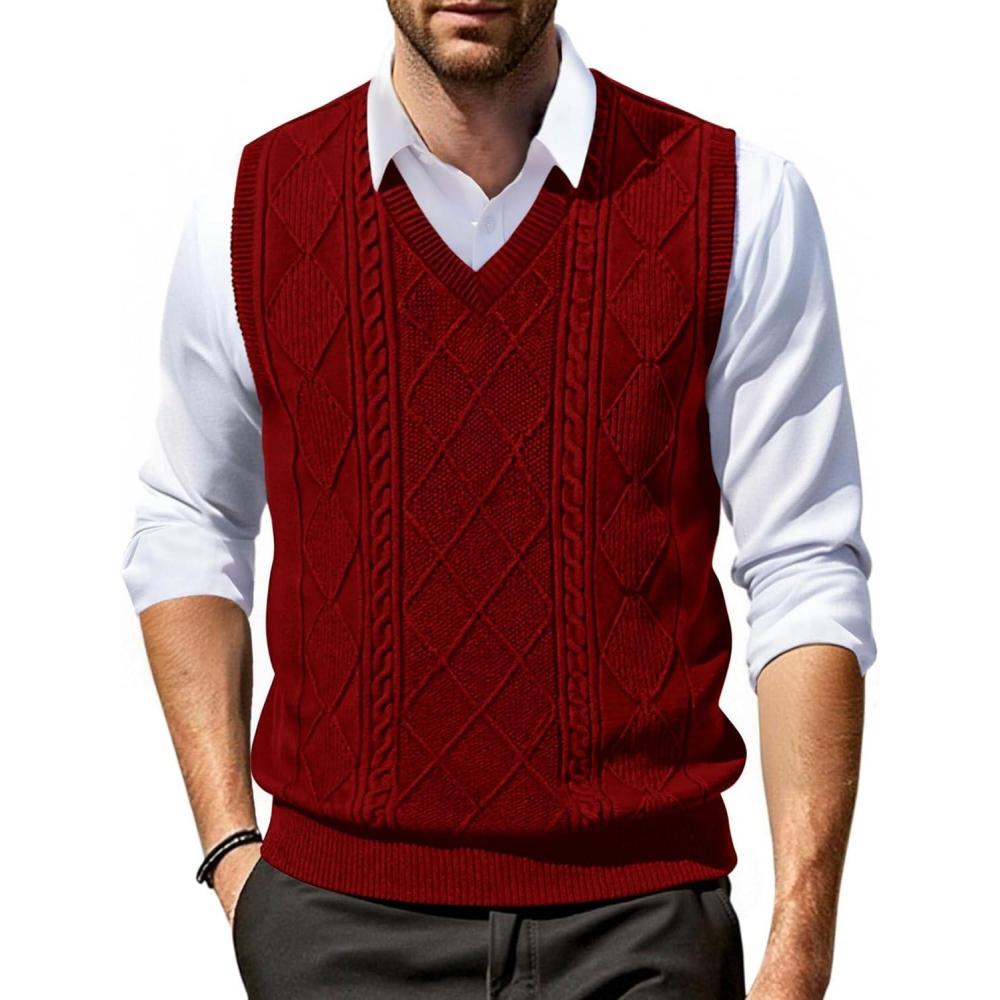 COOFANDY Men’s Sweater Vest V Neck Slim Fit Cable Knitted Sleeveless Pullover Sweater(Dark Red)