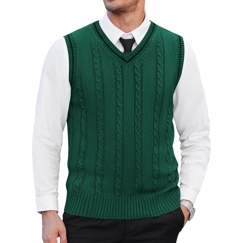 COOFANDY Men’s Sweater Vest V Neck Slim Fit Casual Sleeveless Twisted Knitted Pullover Sweater(Green)