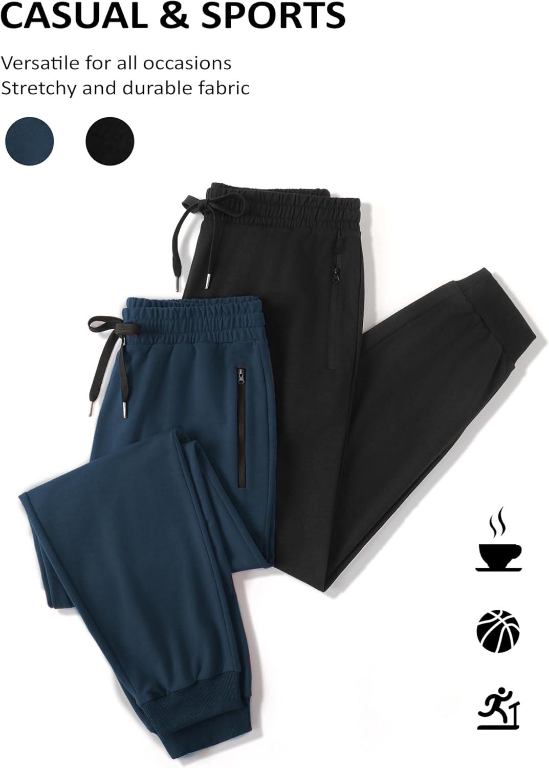 COOFANDY Men’s Sweatpants Joggers Workout Casual Athletic Gym Pants Lightweight Elastic Wasit Sweatpants with Pockets(2 Pack: Black/Dark Blue)