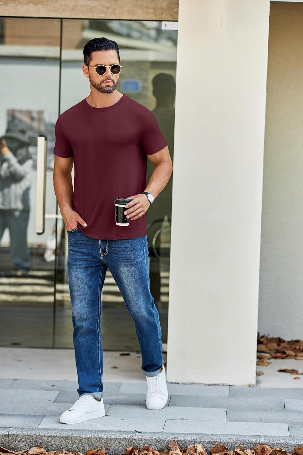 COOFANDY Men’s T Shirt Short Sleeve Crew Neck T-Shirt Casual Summer Classic Basic Tee Shirts(A-dark Red 1pack)