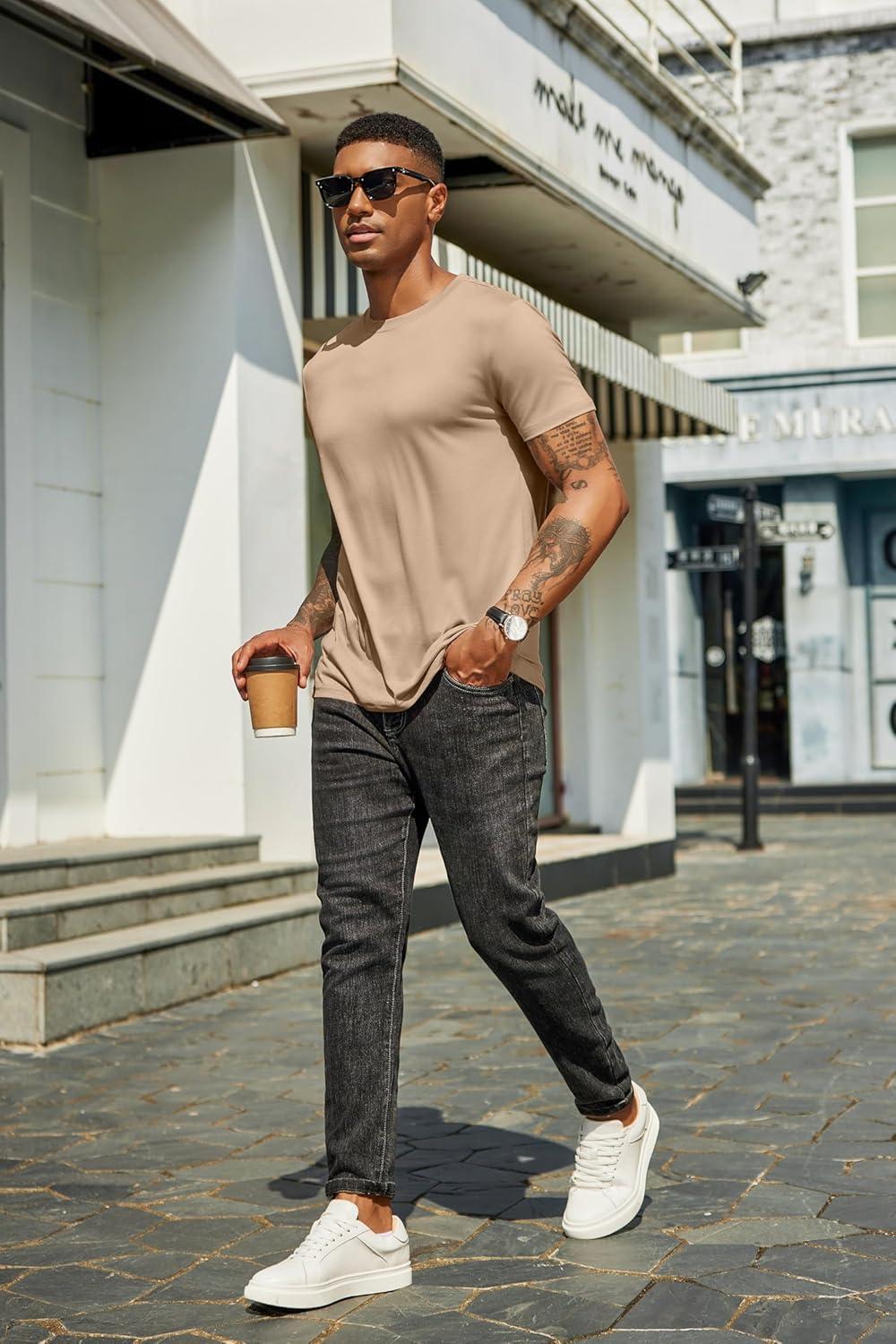 COOFANDY Men’s T Shirt Short Sleeve Crew Neck T-Shirt Casual Summer Classic Basic Tee Shirts(A-khaki 1pack)