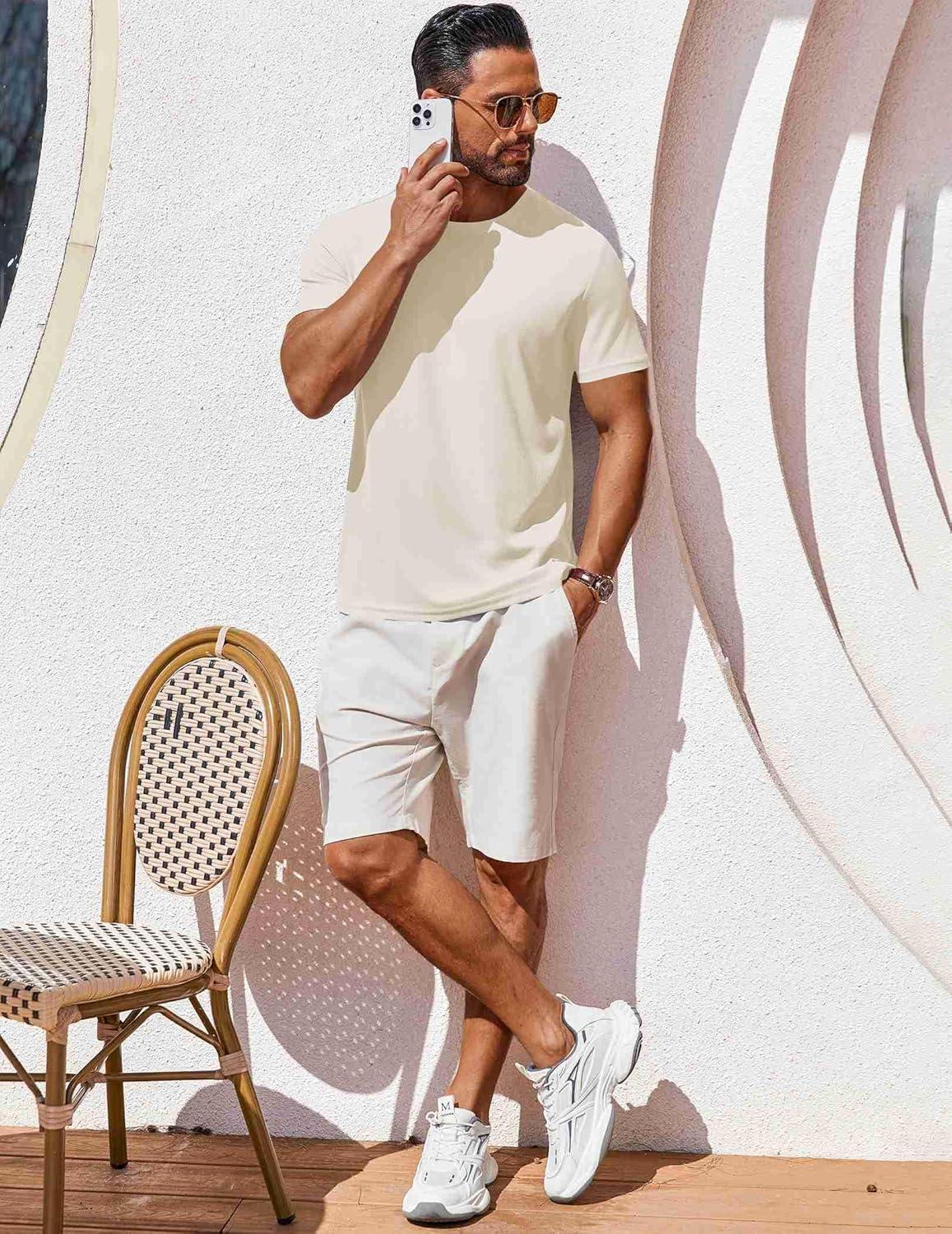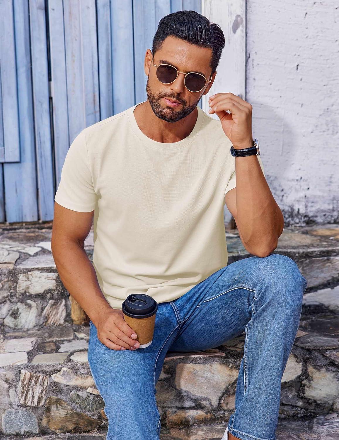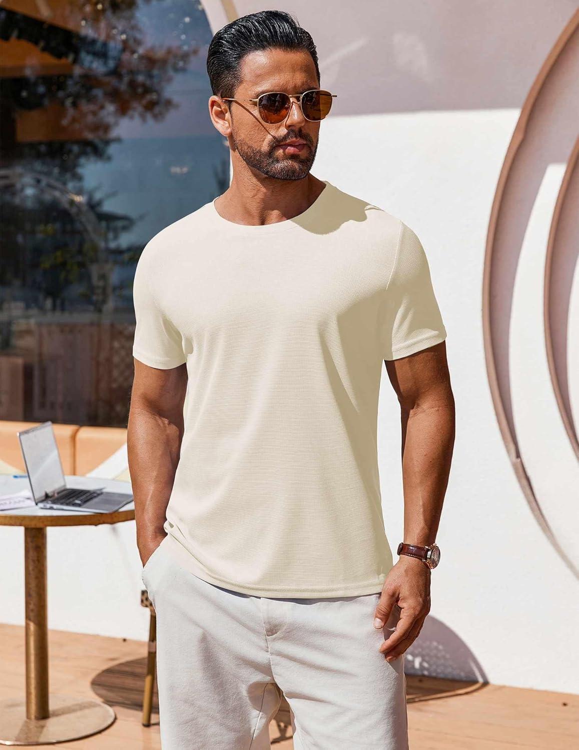 COOFANDY Men’s T Shirt Short Sleeve Crew Neck T-Shirt Casual Summer Classic Basic Tee Shirts(Beige)