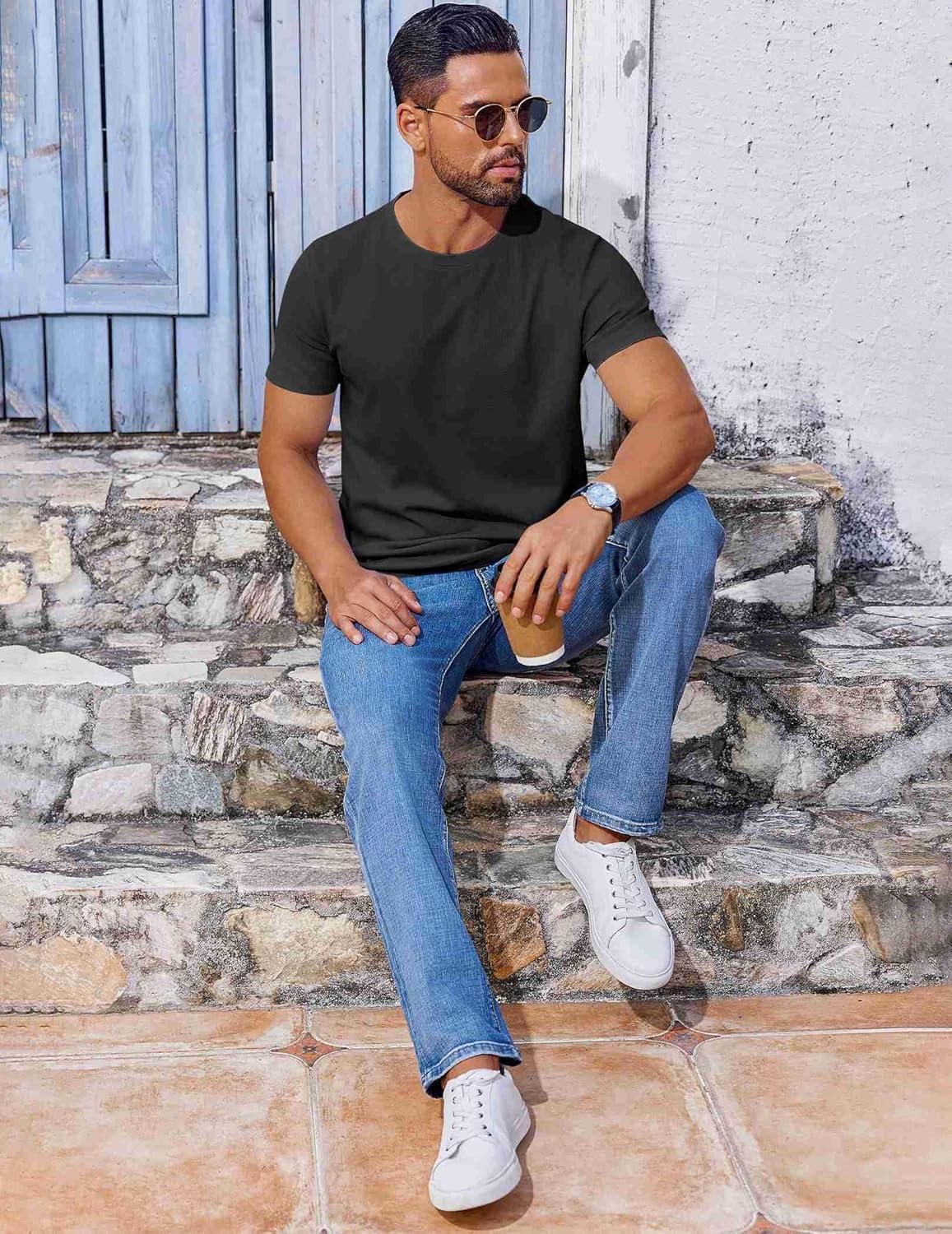 COOFANDY Men’s T Shirt Short Sleeve Crew Neck T-Shirt Casual Summer Classic Basic Tee Shirts(Black)