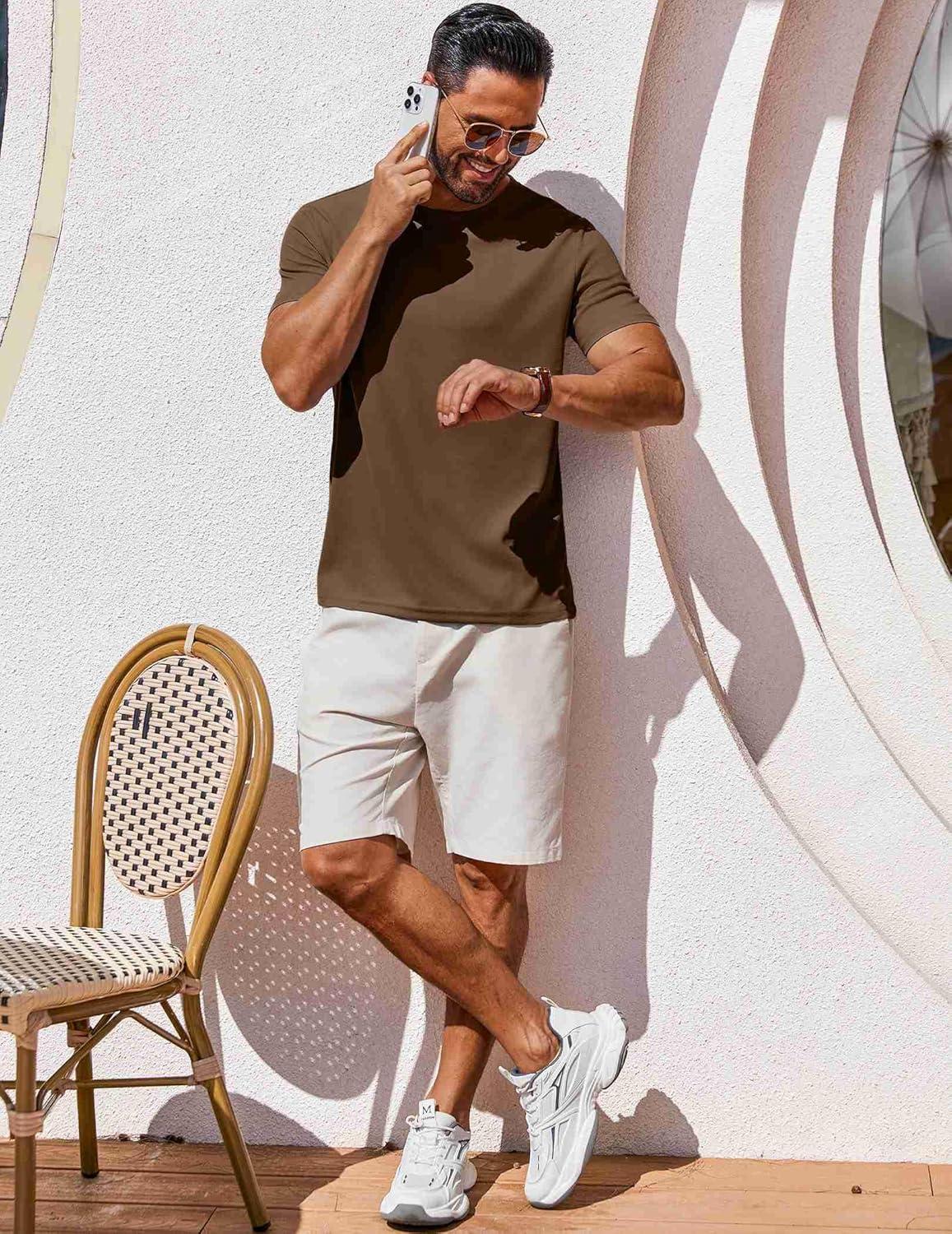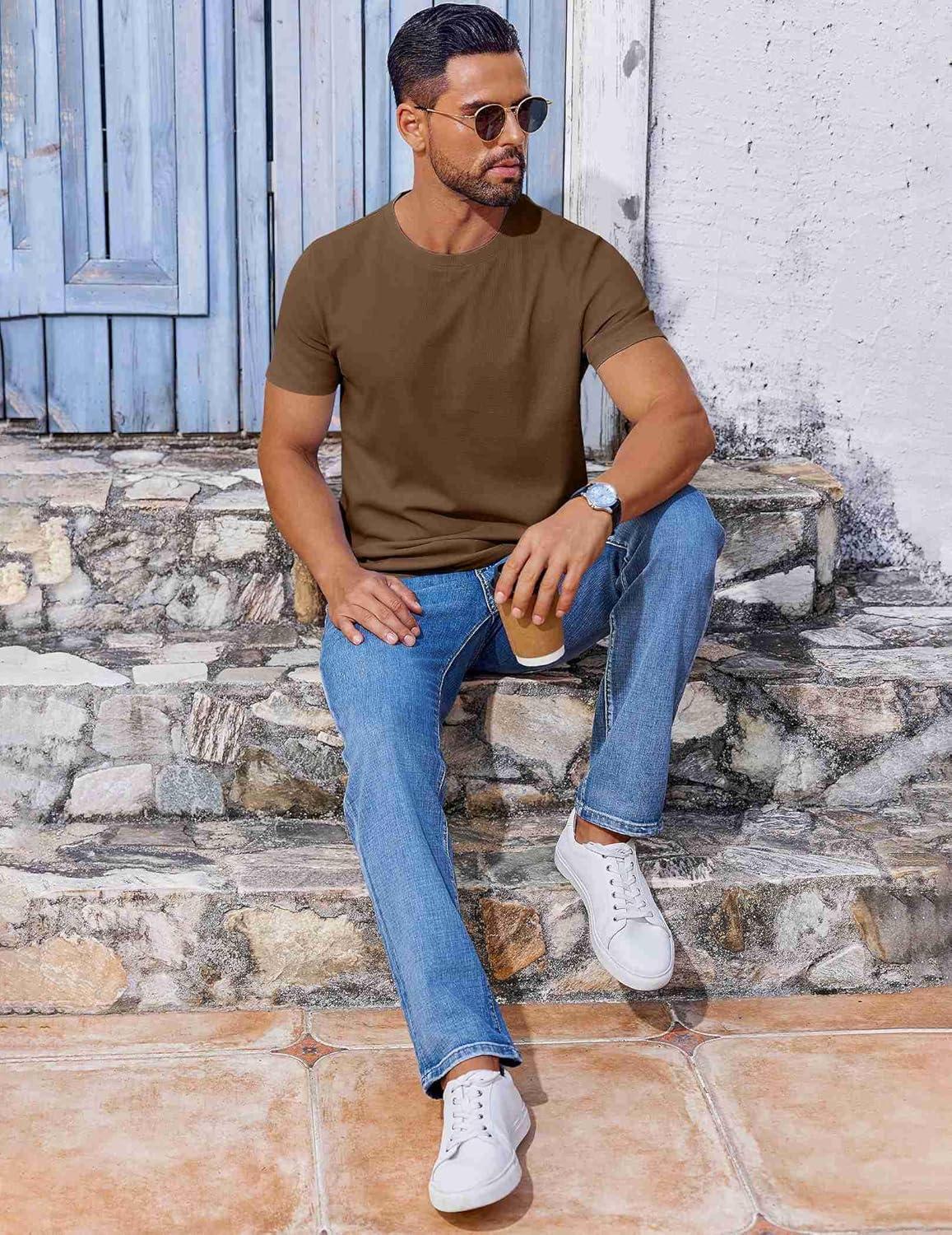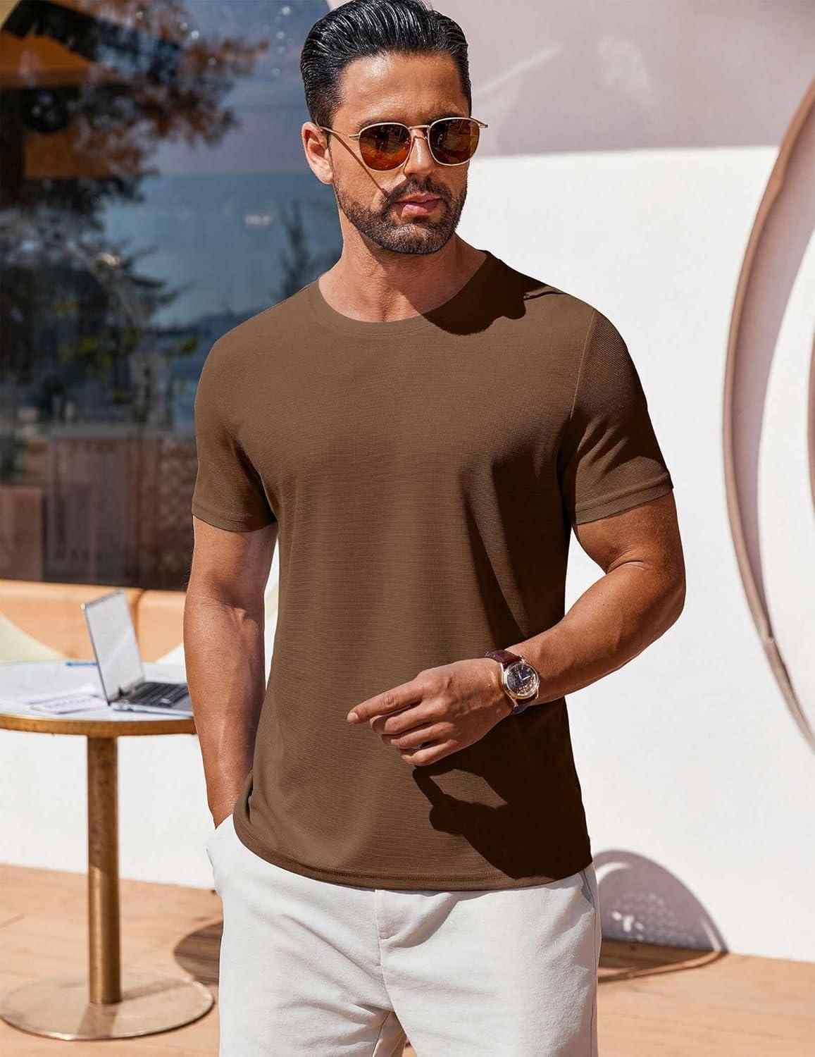 COOFANDY Men’s T Shirt Short Sleeve Crew Neck T-Shirt Casual Summer Classic Basic Tee Shirts(Brown)