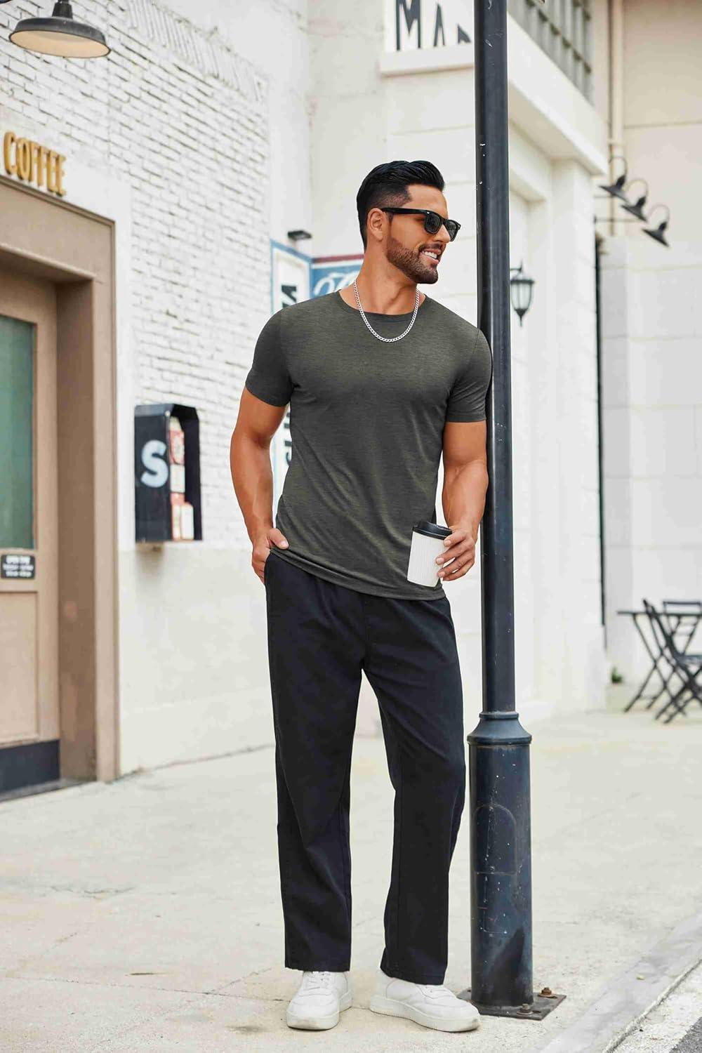 COOFANDY Men’s T Shirt Short Sleeve Crew Neck T-Shirt Casual Summer Classic Basic Tee Shirts(Charcoal Heather)