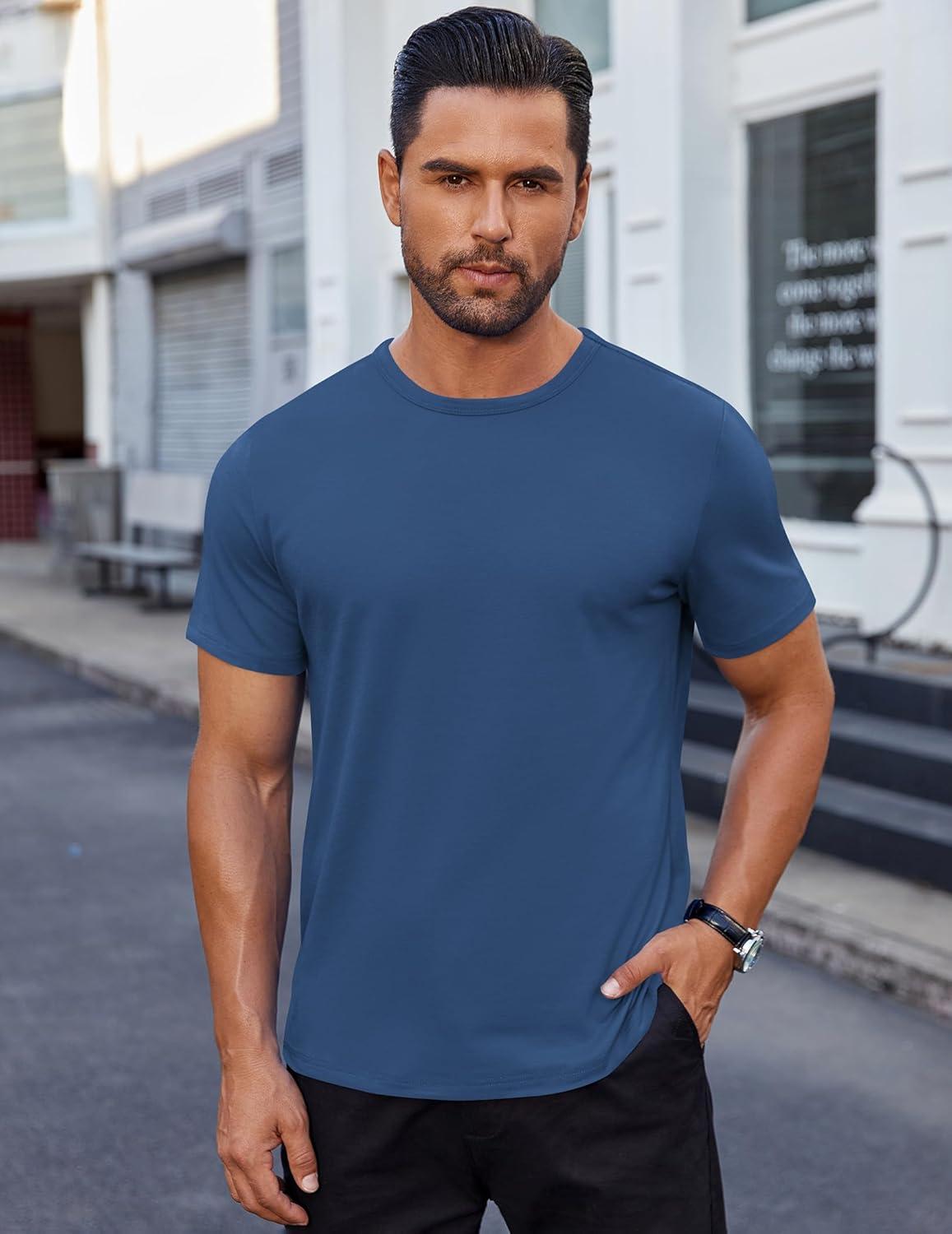 COOFANDY Men’s T Shirt Short Sleeve Crew Neck T-Shirt Casual Summer Classic Basic Tee Shirts(Dark Blue)