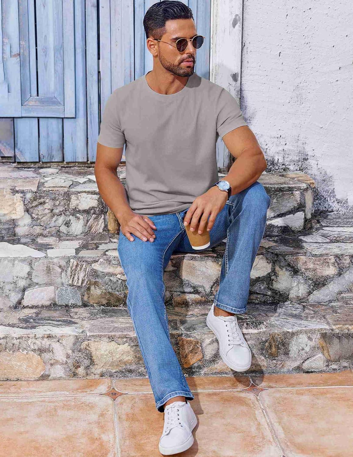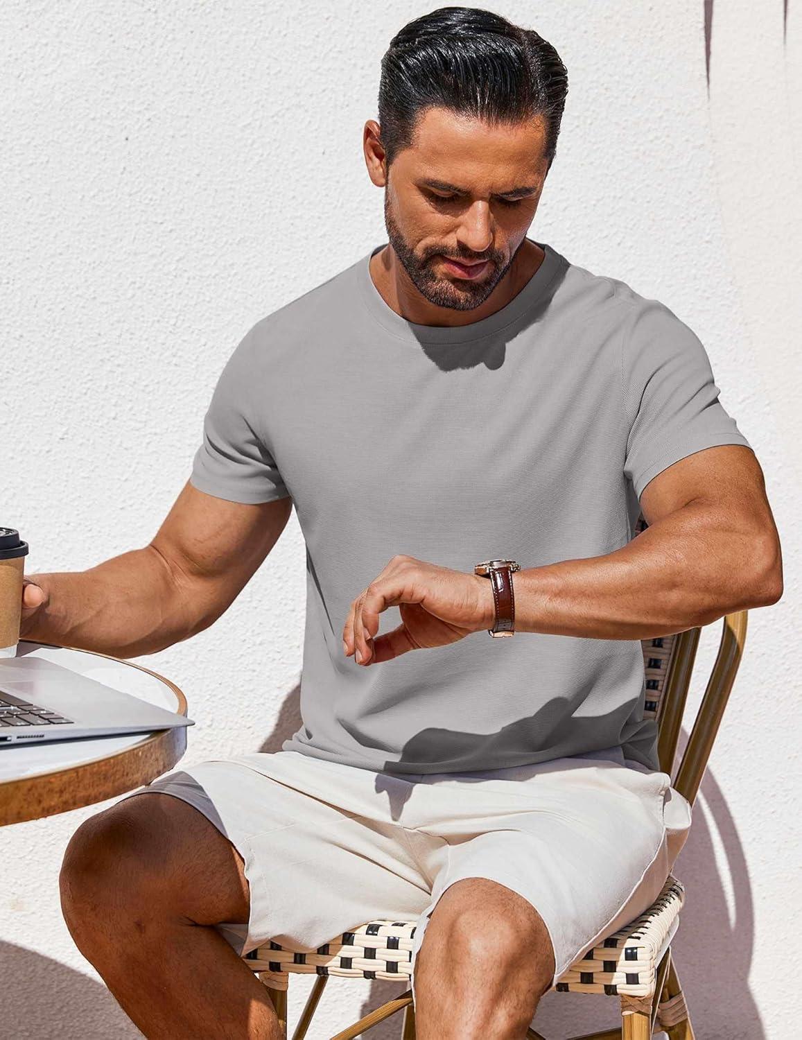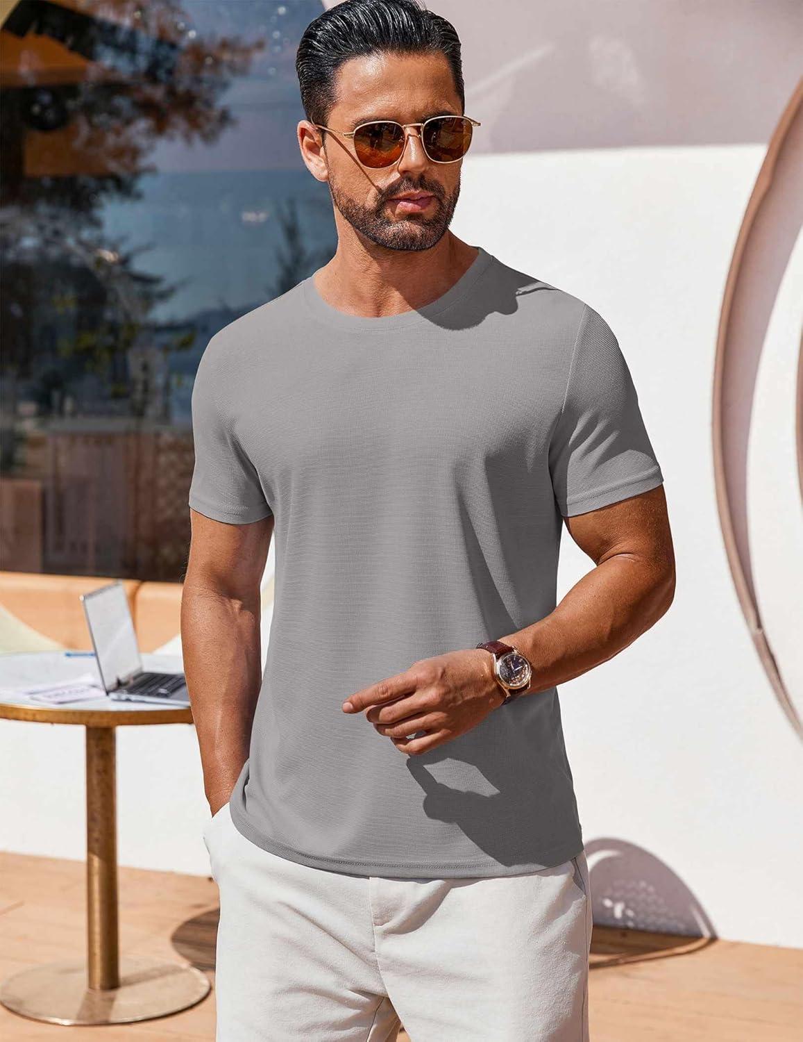 COOFANDY Men’s T Shirt Short Sleeve Crew Neck T-Shirt Casual Summer Classic Basic Tee Shirts(Light Grey)