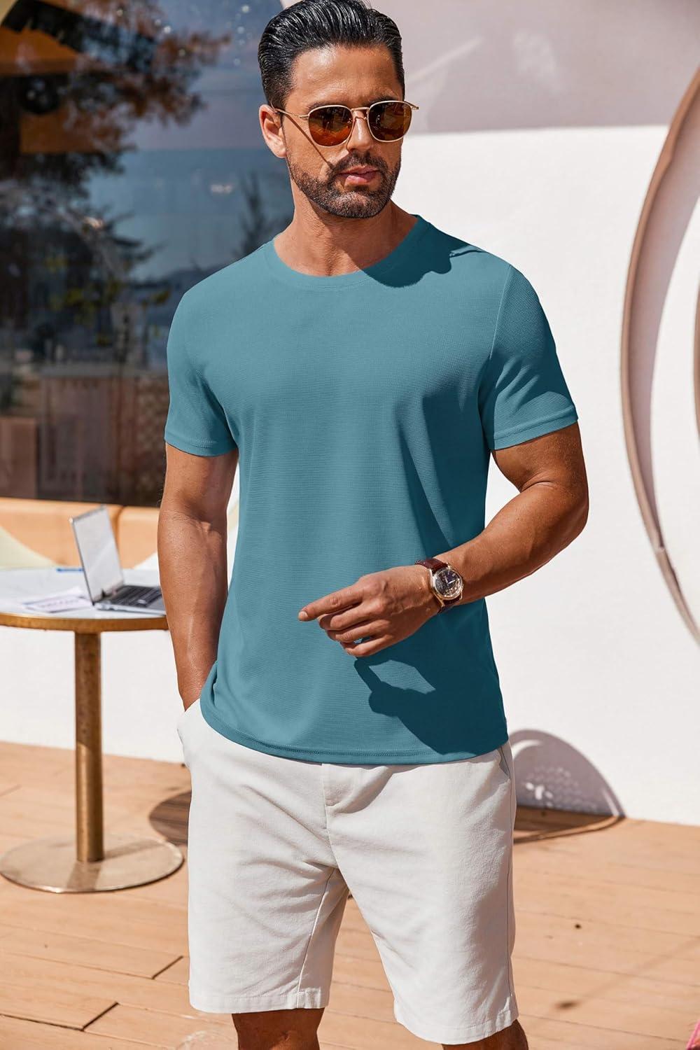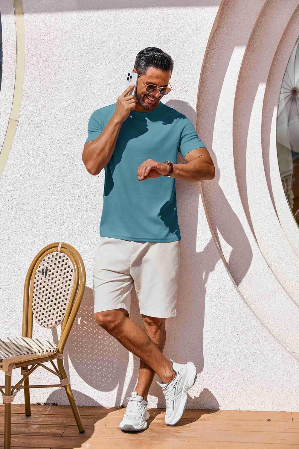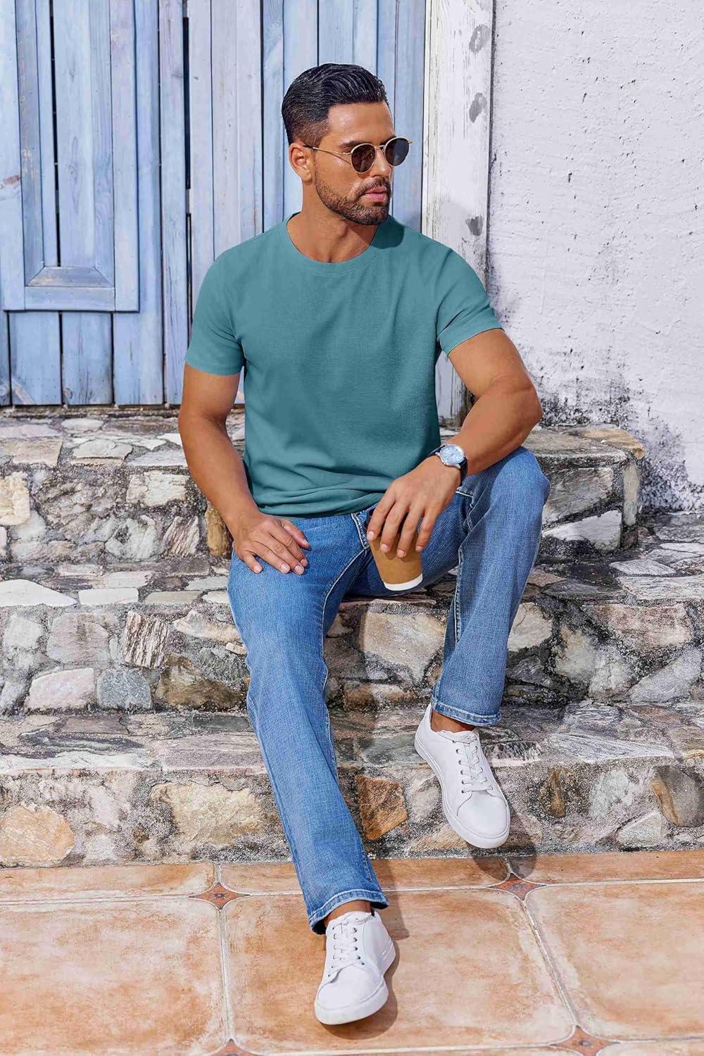 COOFANDY Men’s T Shirt Short Sleeve Crew Neck T-Shirt Casual Summer Classic Basic Tee Shirts(Peacock Blue)