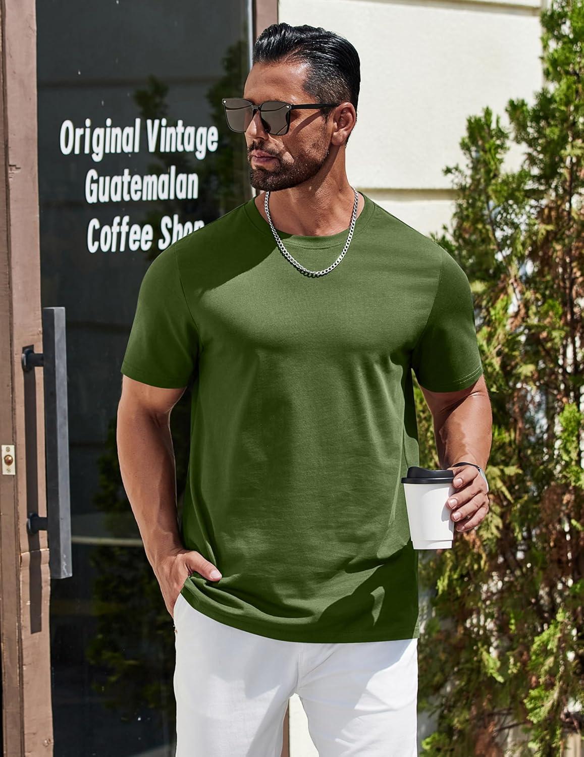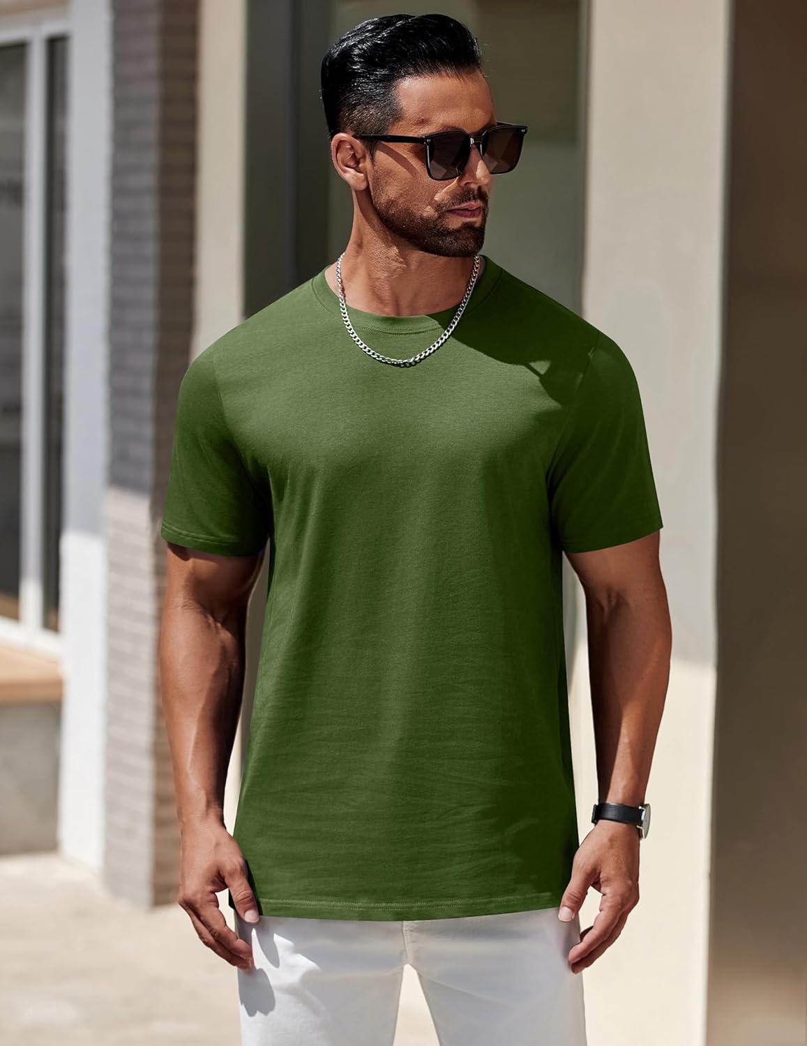 COOFANDY Mens T-Shirts 100% Cotton Premium Short Sleeve Shirt Crew Neck Basic Tshirt(Army Green)