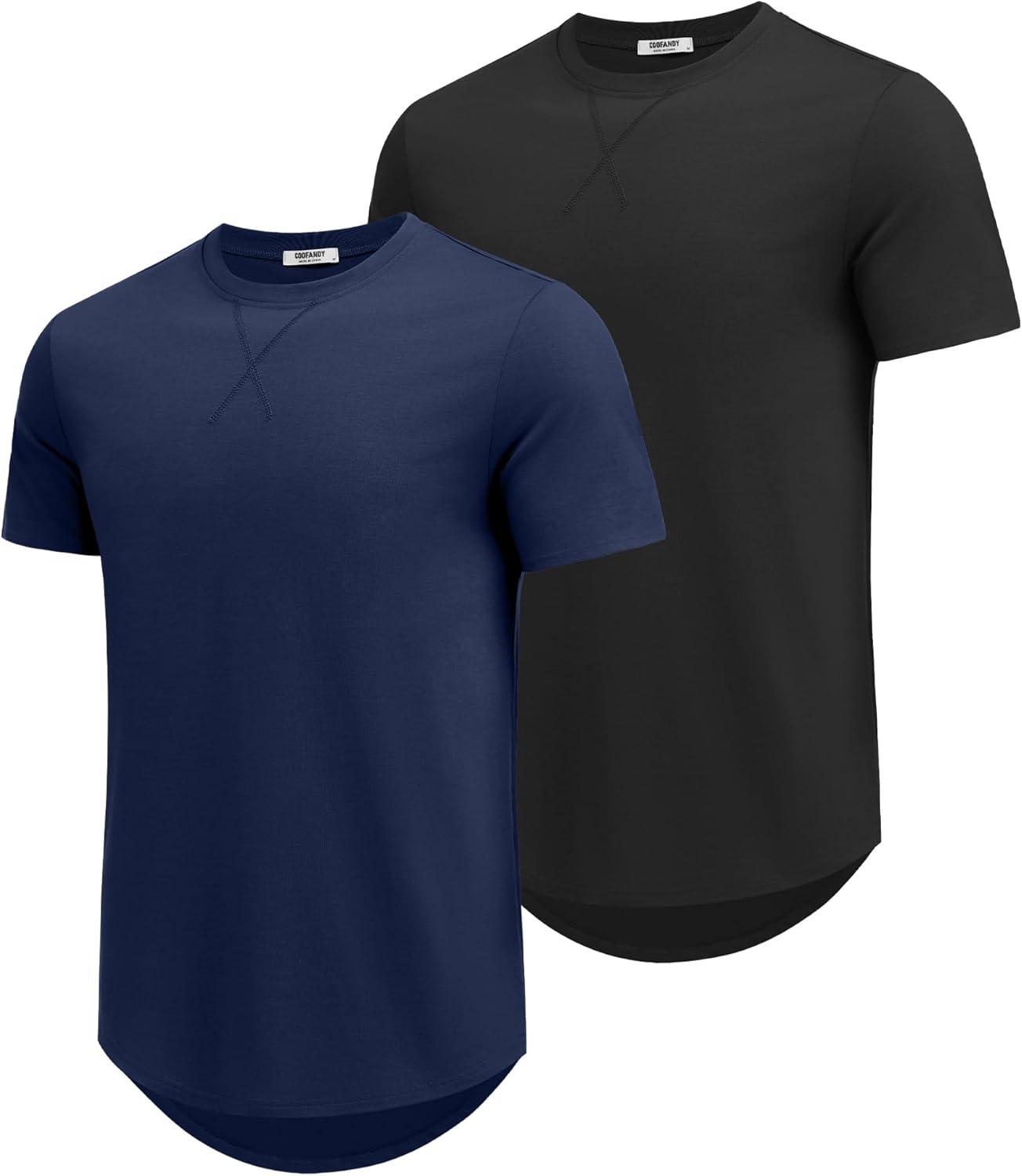 COOFANDY Mens T Shirts Casual Short Sleeve Cotton Tee Shirts Hipster Hip Hop Longline T-Shirt Basic Summer Tops(Two Pack- Black + Navy Blue)