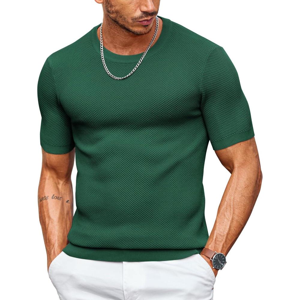 COOFANDY Men’s T- Shirts Casual Short Sleeve Crewneck Shirts Solid Textured Knit Pullover Tees(Green)