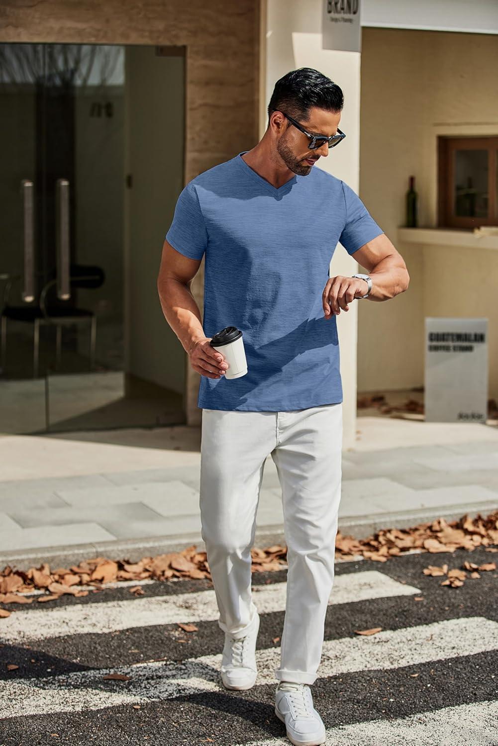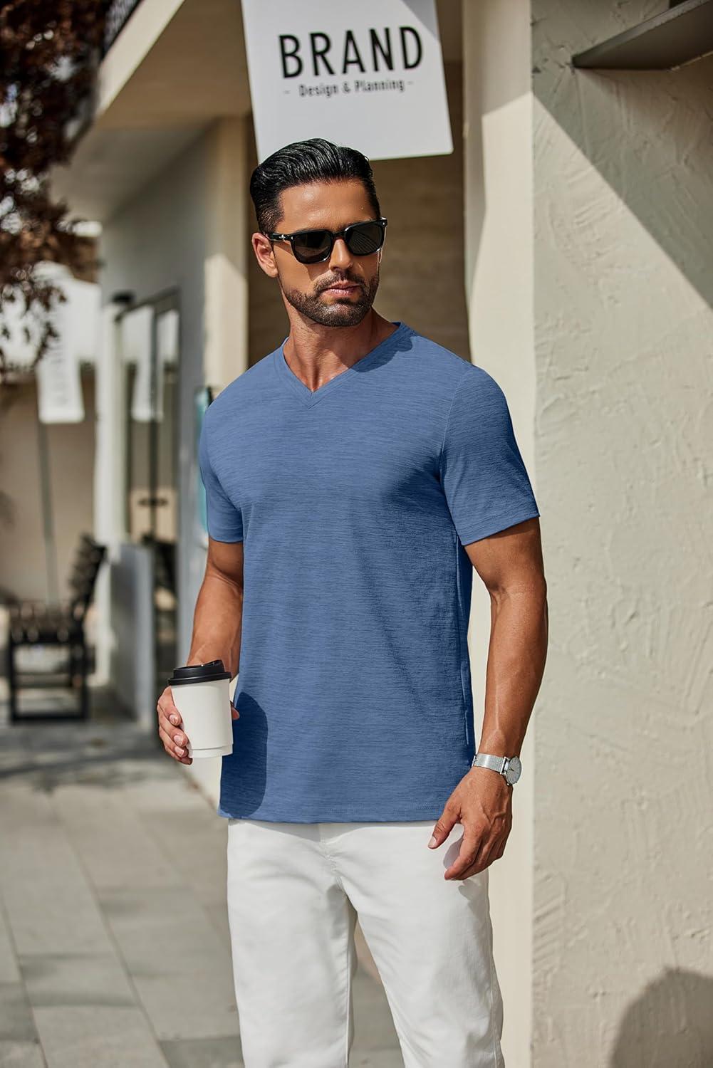 COOFANDY Men’s T Shirts Short Sleeve Classic V Neck T-Shirt Casual Summer Basic Tee Shirt(Dark Blue)