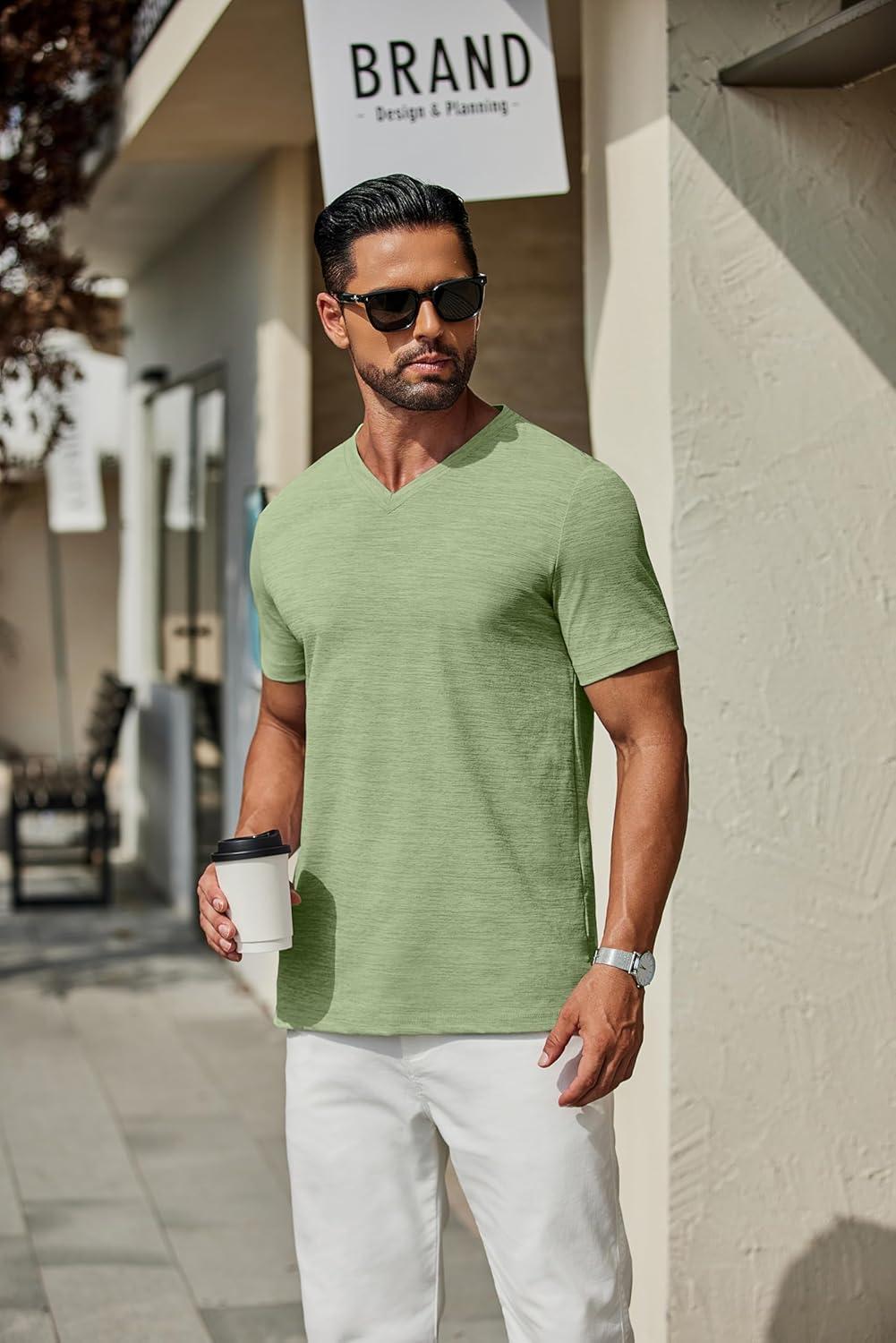 COOFANDY Men’s T Shirts Short Sleeve Classic V Neck T-Shirt Casual Summer Basic Tee Shirt(Light Green)