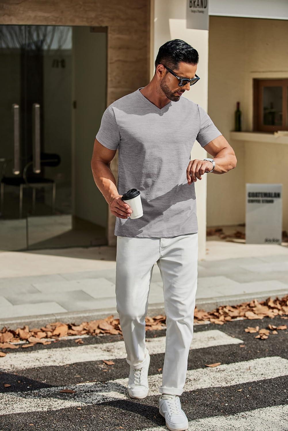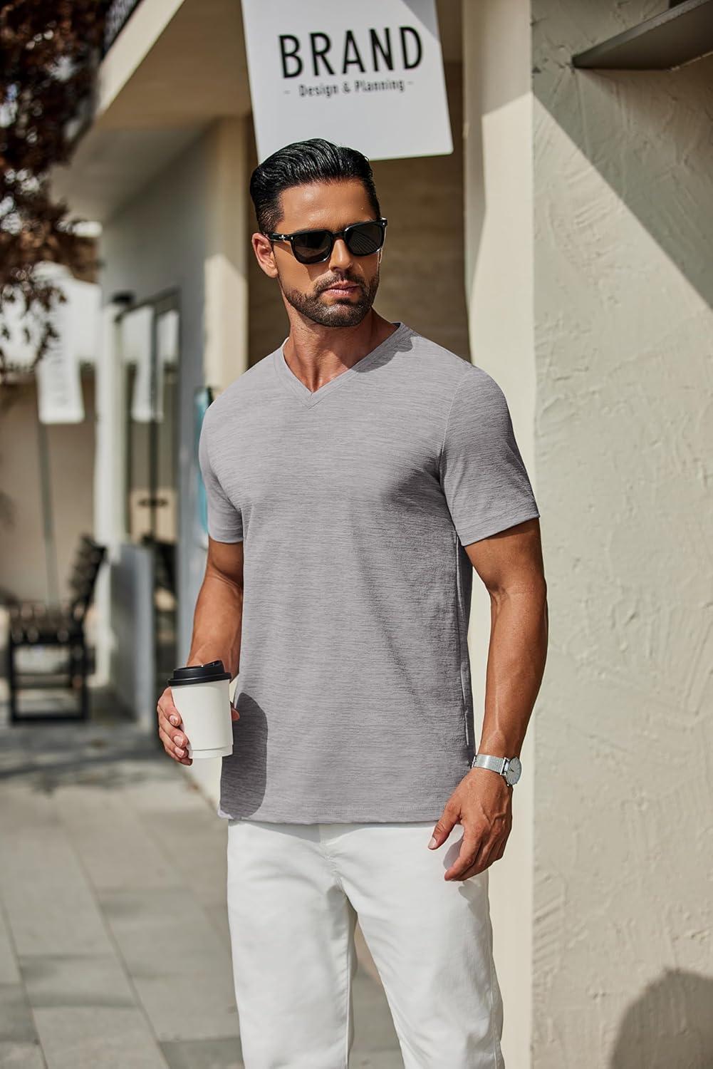 COOFANDY Men’s T Shirts Short Sleeve Classic V Neck T-Shirt Casual Summer Basic Tee Shirt(Light Grey)