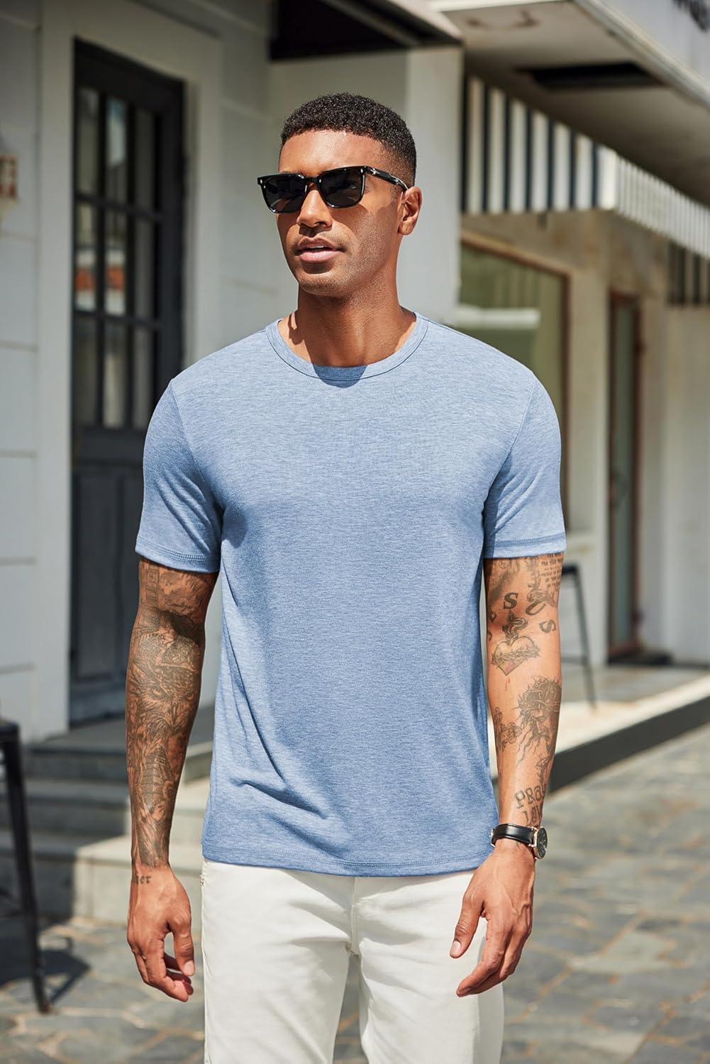 COOFANDY Men’s T Shirts Short Sleeve Soft Crew Neck Lightweight Tee Shirts Casual Summer Basic Tops(Light Blue)