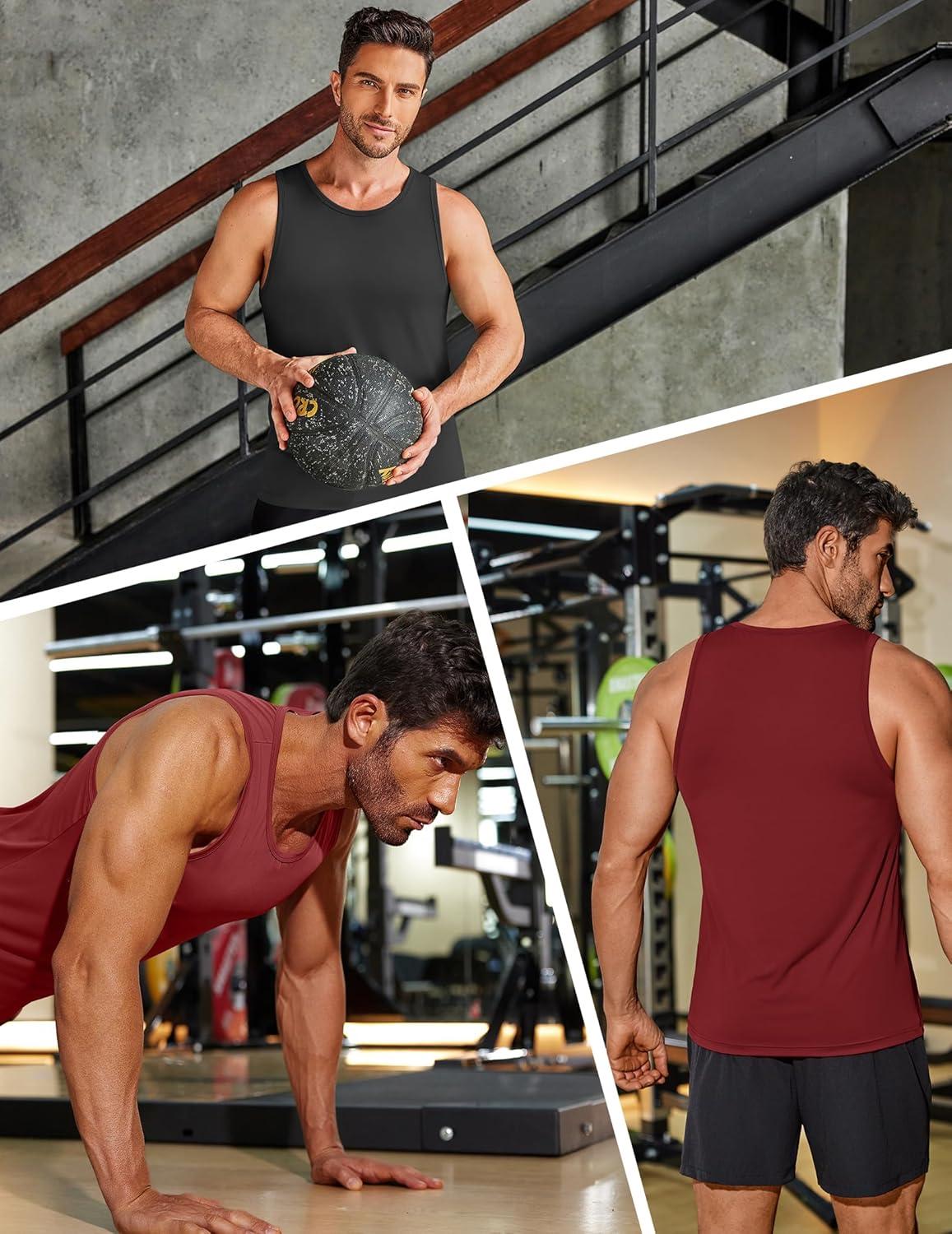COOFANDY Mens Tank Top UPF 50+ Quick Dry Sleeveless Shirts Summer Workout Muscle T Shirt Cool Swim Beach Top(Black/ Wine Red)