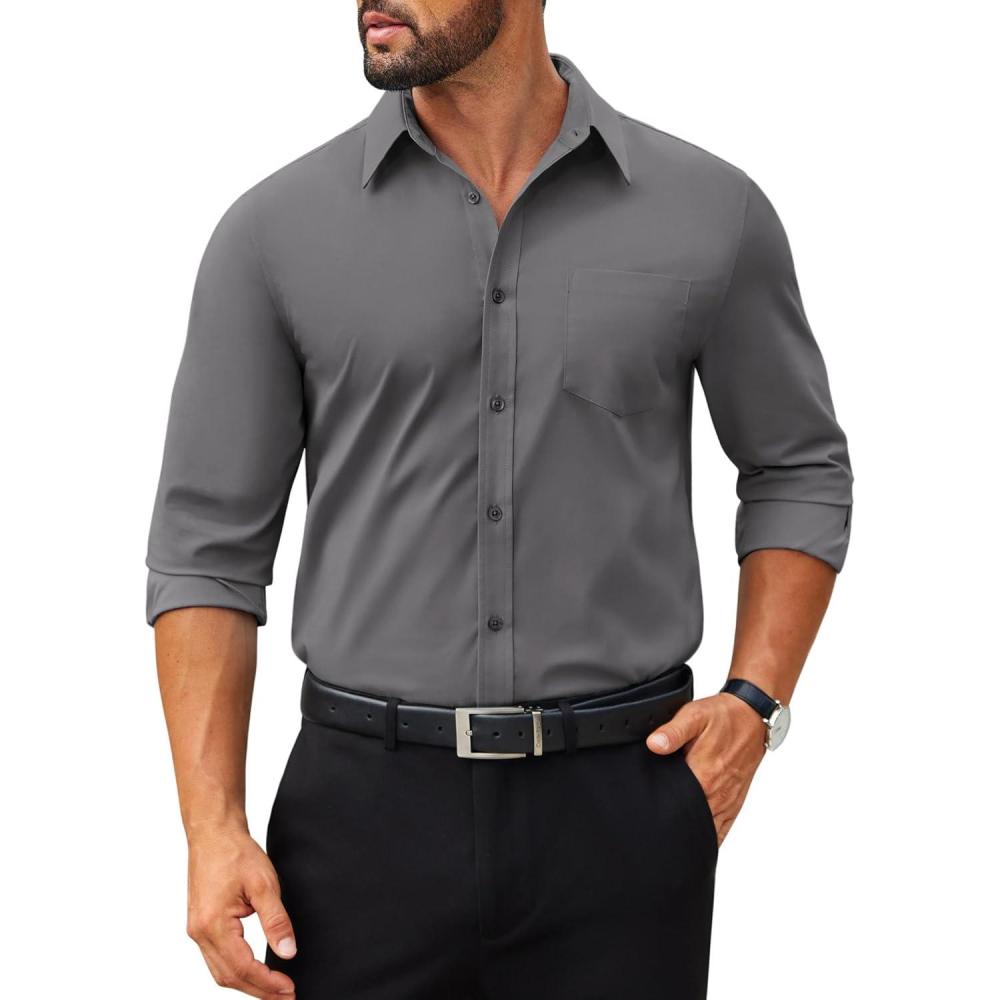 COOFANDY Mens Tech Dress Shirts Long Sleeve Poplin Formal Shirt Casual Button Down Shirts(Dark Grey)