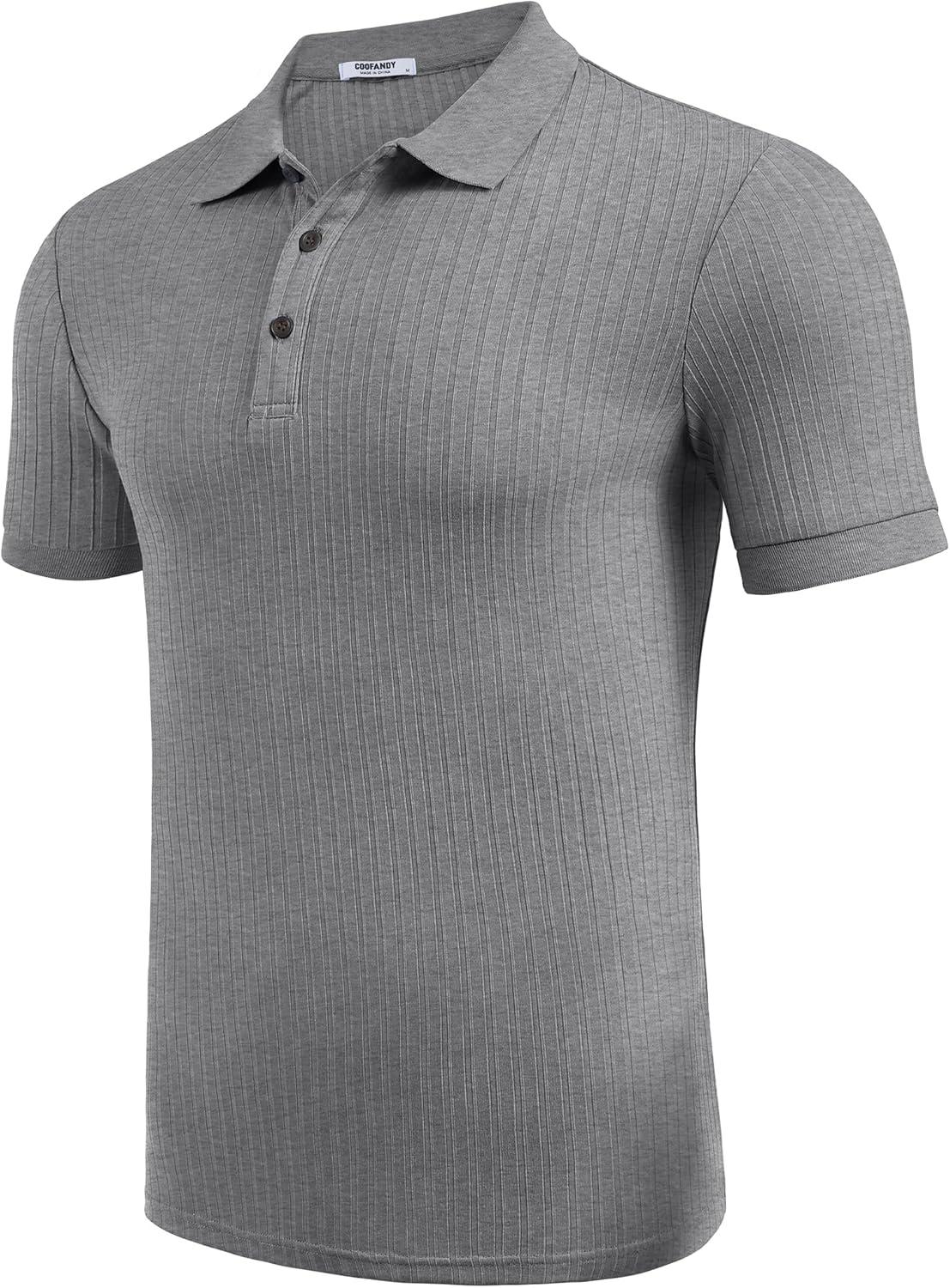 COOFANDY Men’s Textured Polo Shirts Short Sleeve Slim Fit Casual Button Polo T-Shirt Summer Collared Golf Shirt(Dark Grey)