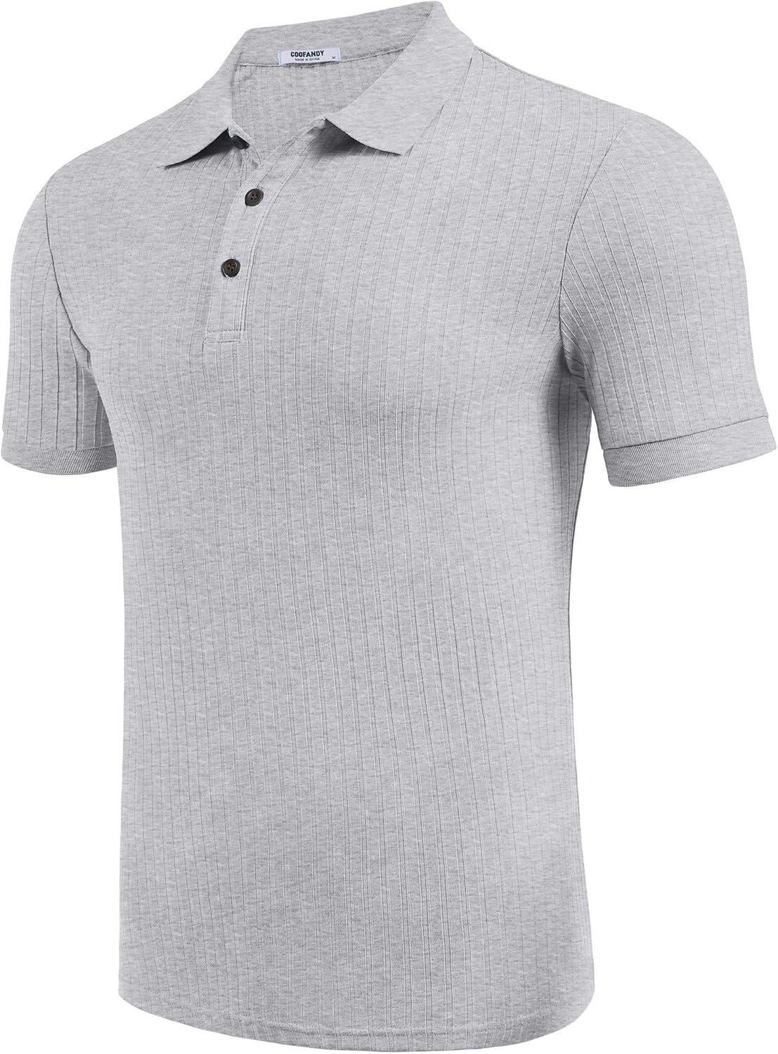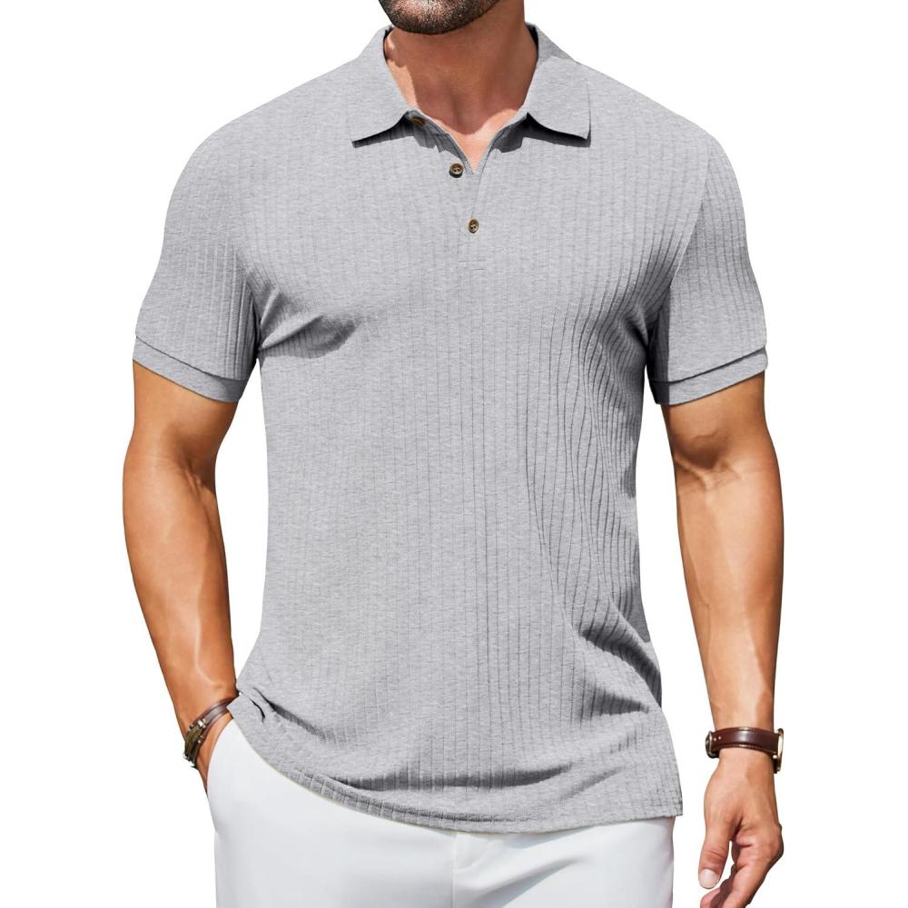 COOFANDY Men’s Textured Polo Shirts Short Sleeve Slim Fit Casual Button Polo T-Shirt Summer Collared Golf Shirt(Light Grey)