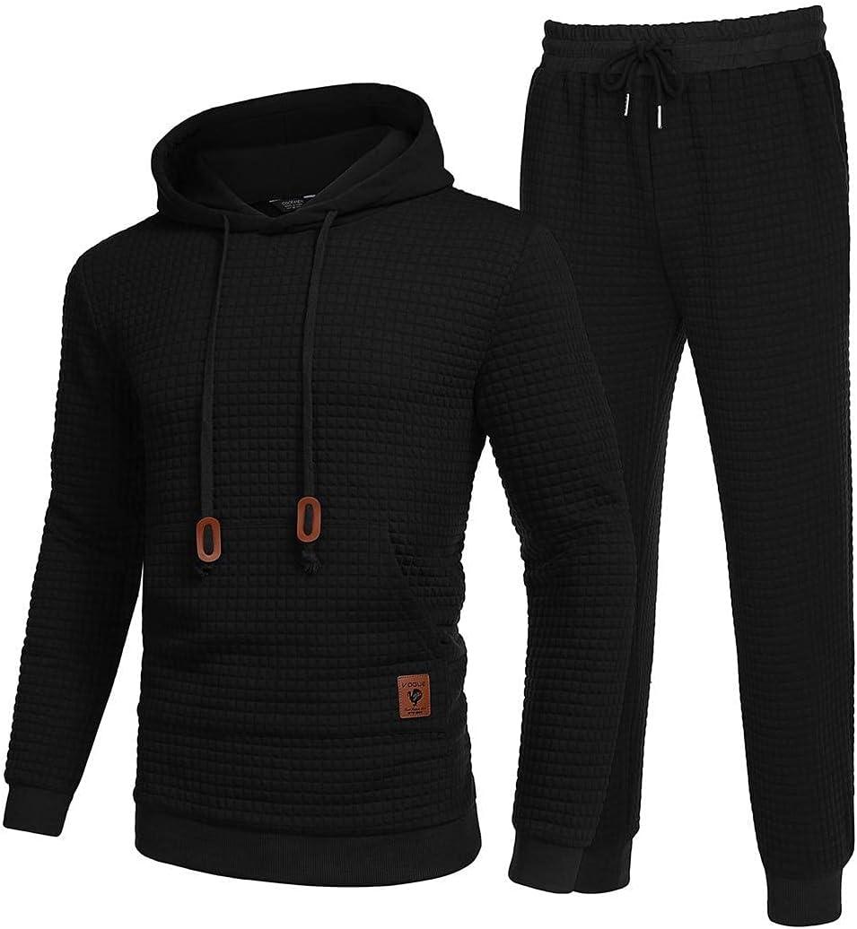 COOFANDY Men’s Tracksuit 2 Piece Hoodie Sweatsuit Sets Casual Athletic Jogging Suits Waffle Plaid Jacquard Outfits(Black)