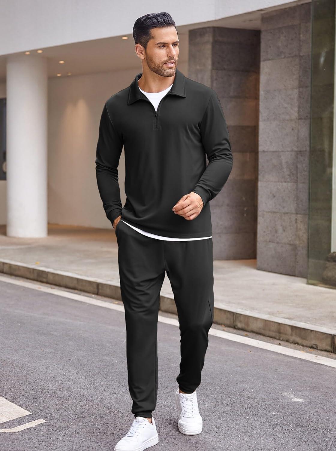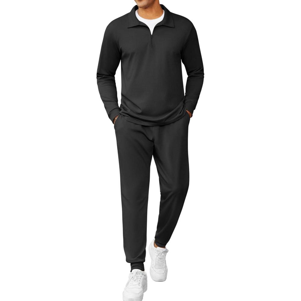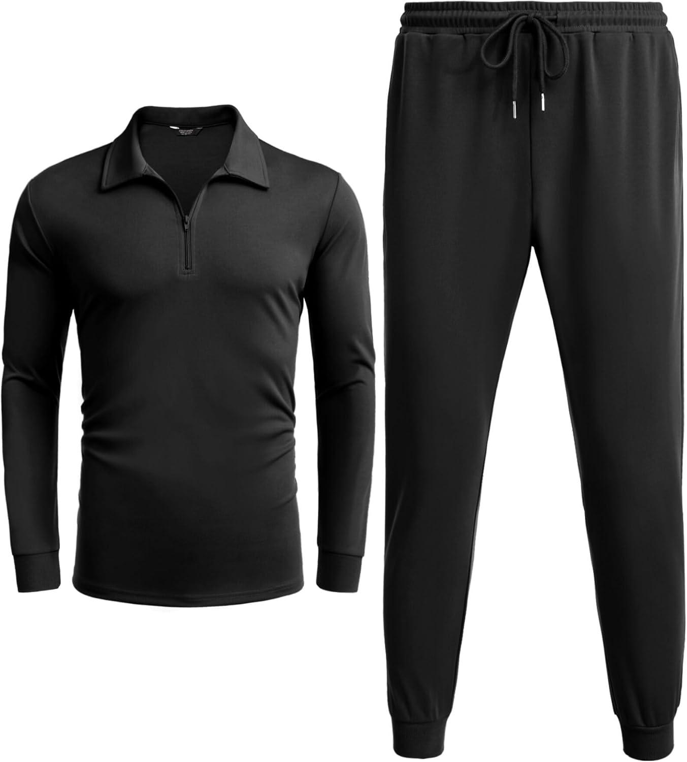 COOFANDY Men’s Tracksuit 2 Piece Quarter Zip Polo Athletic Sweatsuits Casual Running Jogging Sport Suit Sets(All Black)