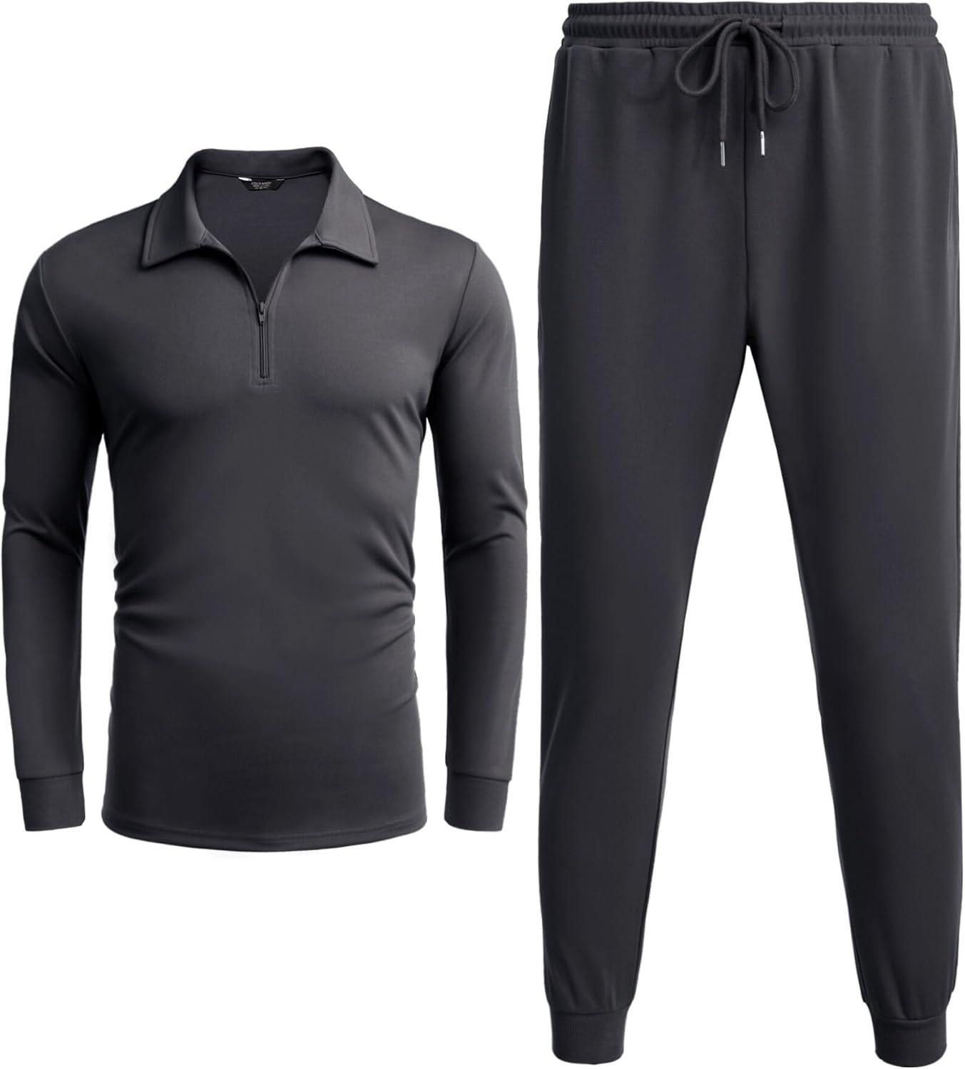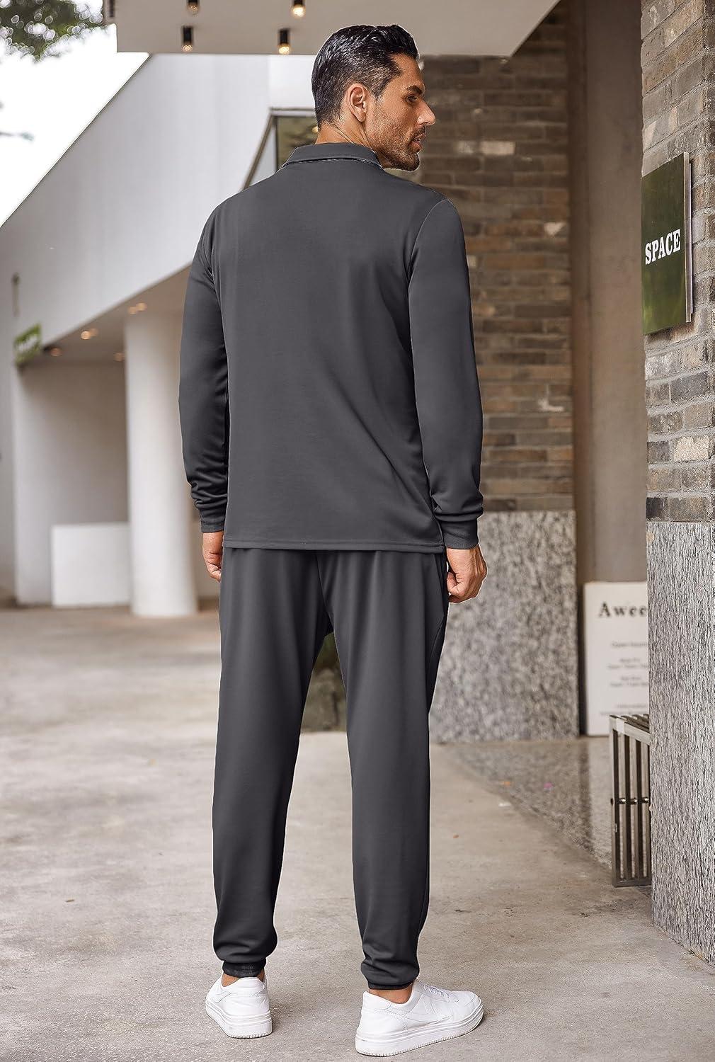 COOFANDY Men’s Tracksuit 2 Piece Quarter Zip Polo Athletic Sweatsuits Casual Running Jogging Sport Suit Sets(Dark Gray)