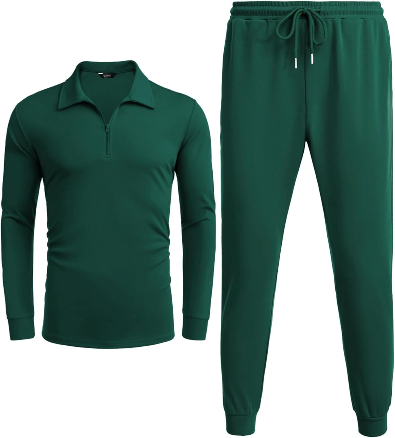 COOFANDY Men’s Tracksuit 2 Piece Quarter Zip Polo Athletic Sweatsuits Casual Running Jogging Sport Suit Sets(Dark Green)