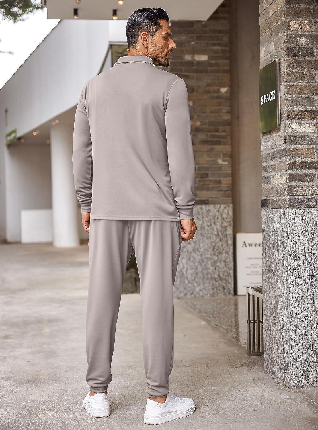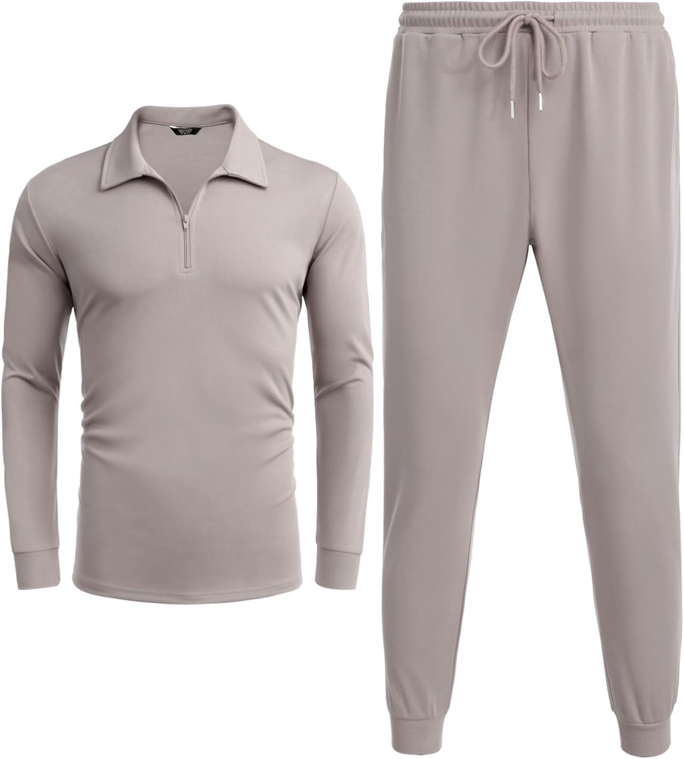 COOFANDY Men’s Tracksuit 2 Piece Quarter Zip Polo Athletic Sweatsuits Casual Running Jogging Sport Suit Sets(Grey)