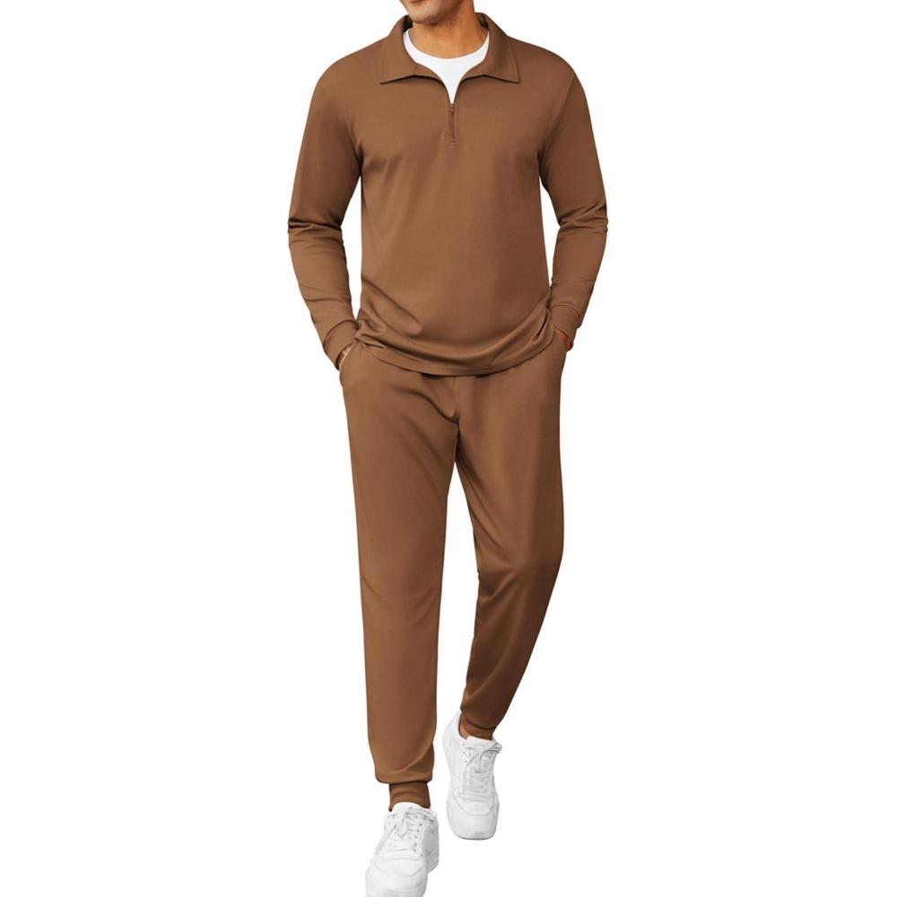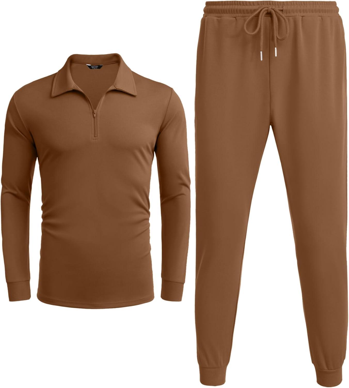 COOFANDY Men’s Tracksuit 2 Piece Quarter Zip Polo Athletic Sweatsuits Casual Running Jogging Sport Suit Sets(Light Brown)