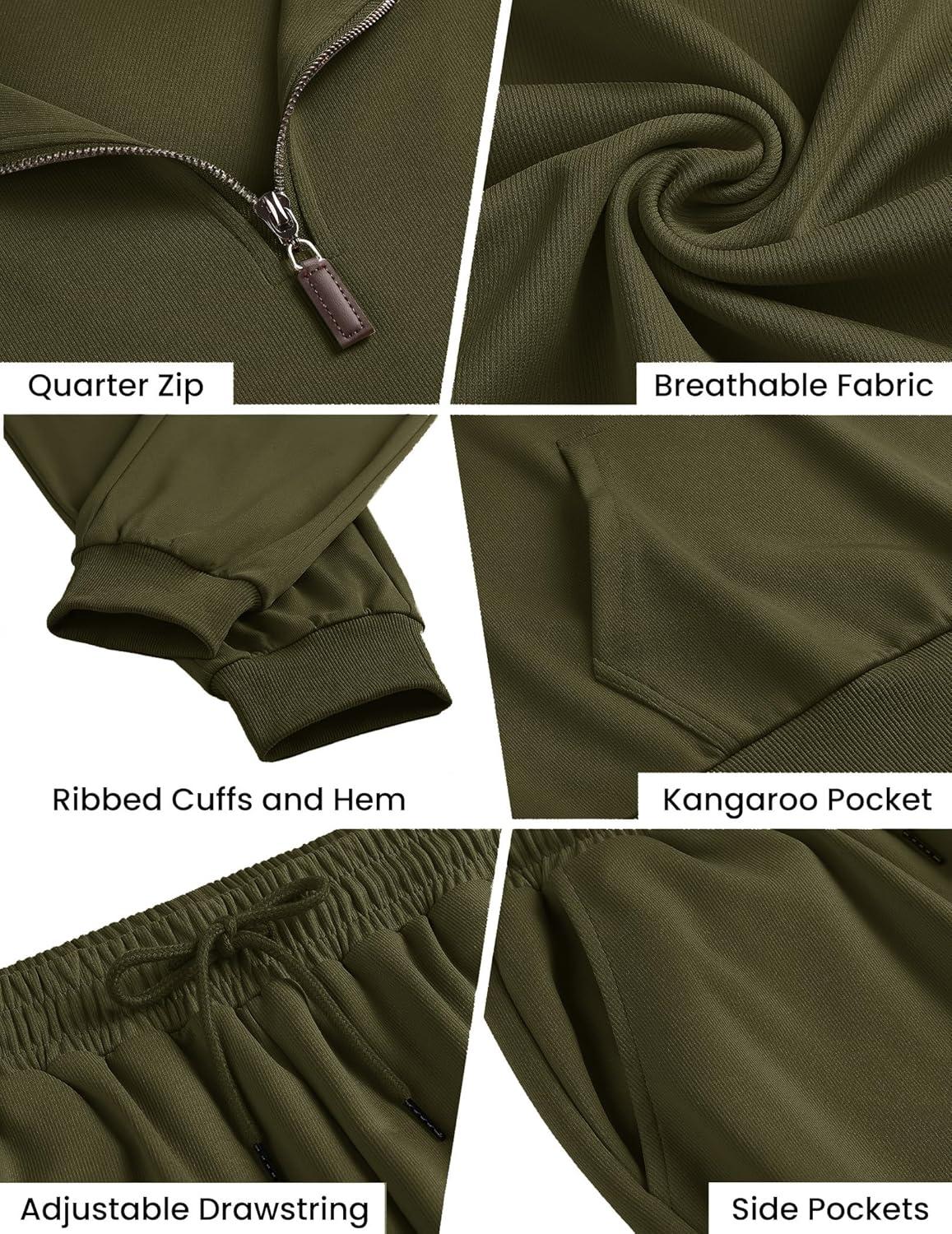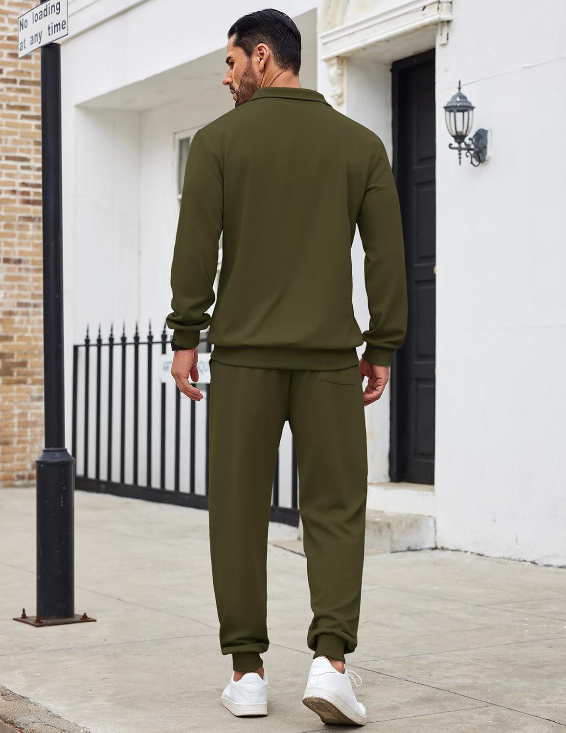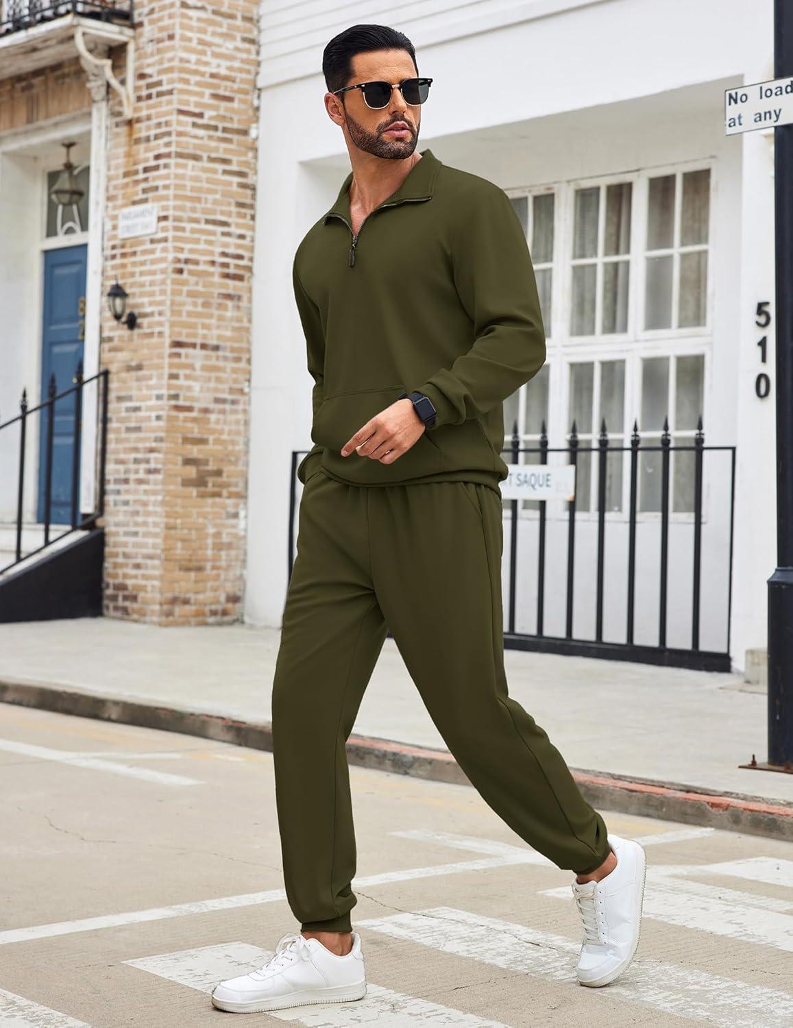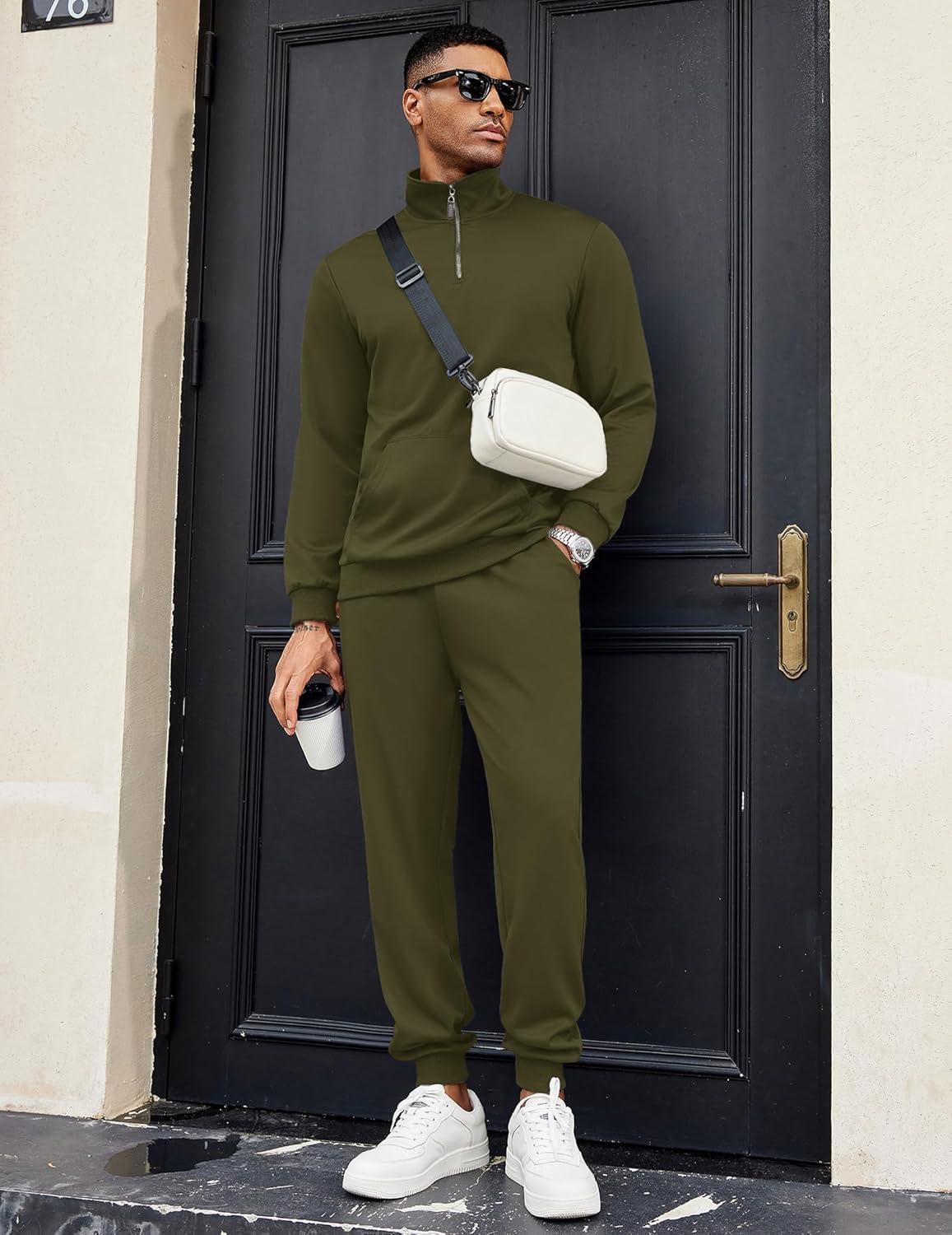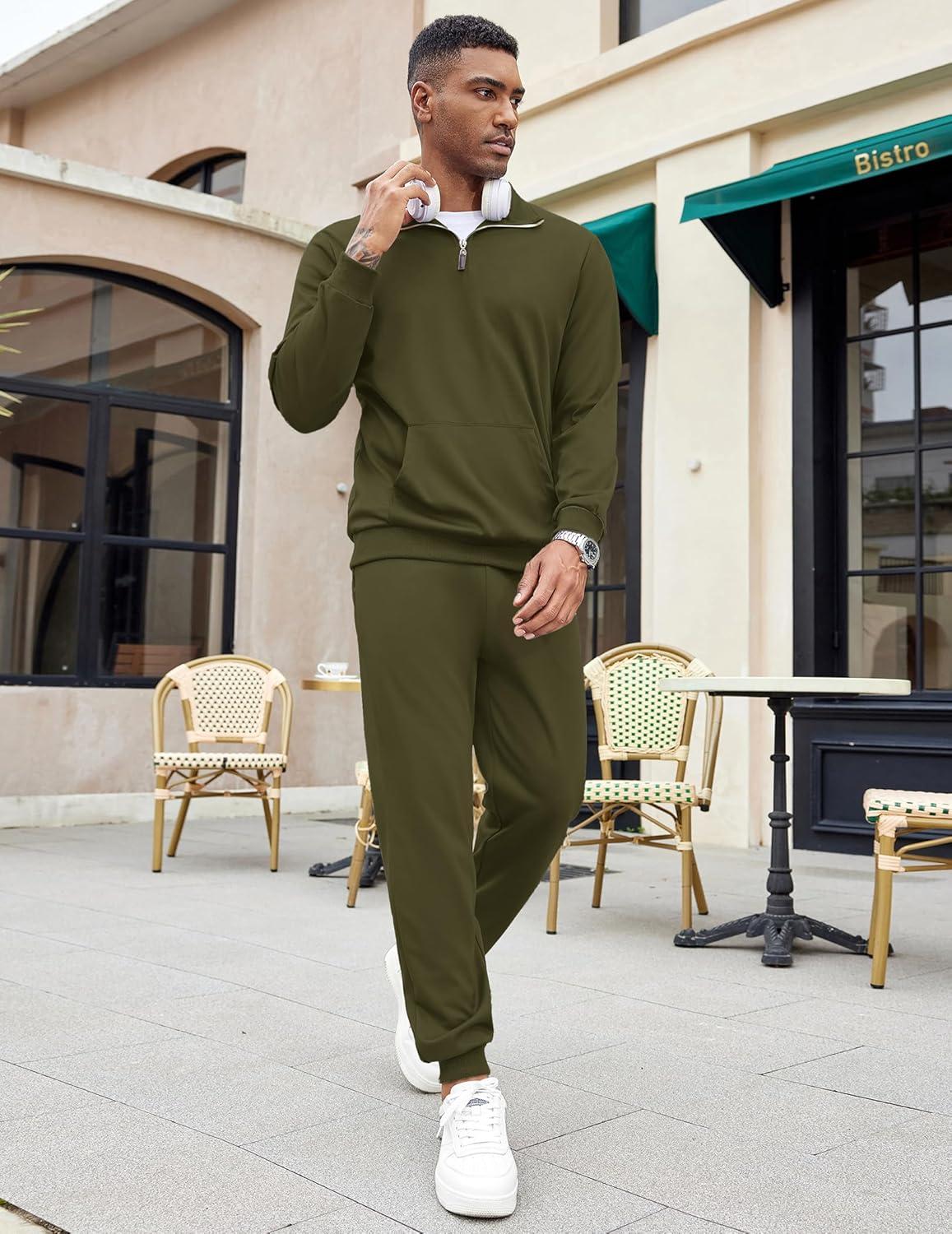 COOFANDY Men’s Tracksuit 2 Piece Quarter Zip Sweatsuit Sets Casual Athletic Running Jogging Suits(Army Green)
