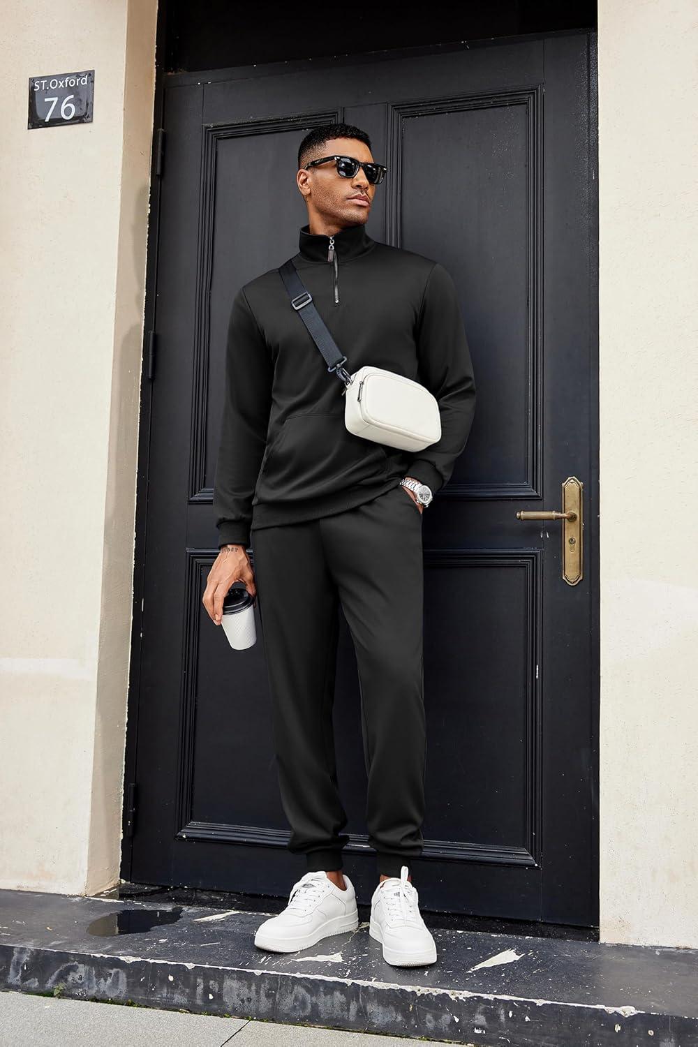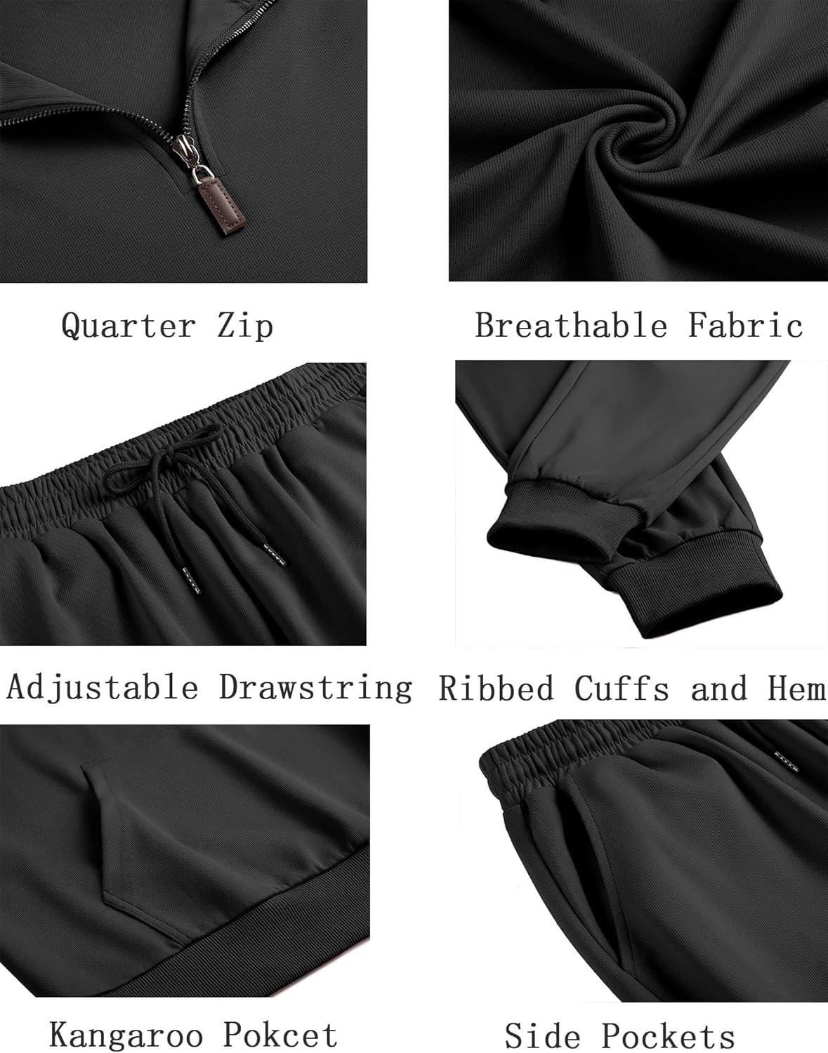 COOFANDY Men’s Tracksuit 2 Piece Quarter Zip Sweatsuit Sets Casual Athletic Running Jogging Suits(Black)