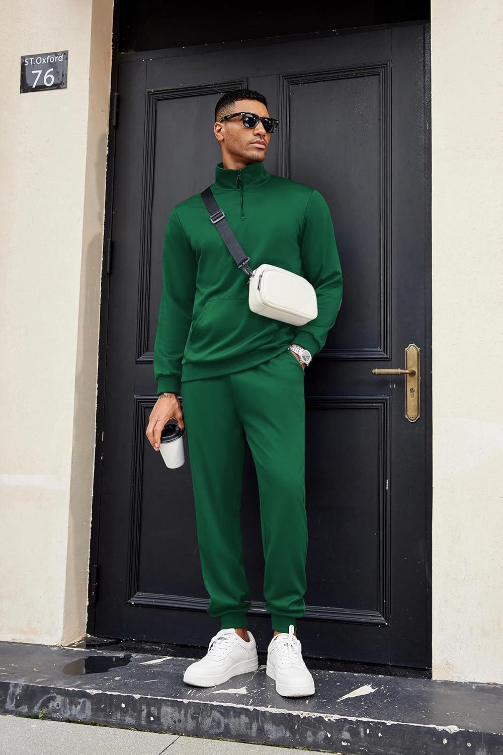 COOFANDY Men’s Tracksuit 2 Piece Quarter Zip Sweatsuit Sets Casual Athletic Running Jogging Suits(Green)