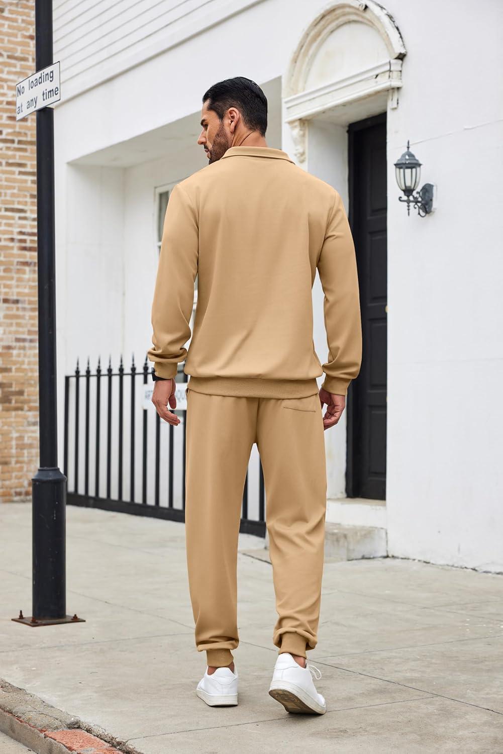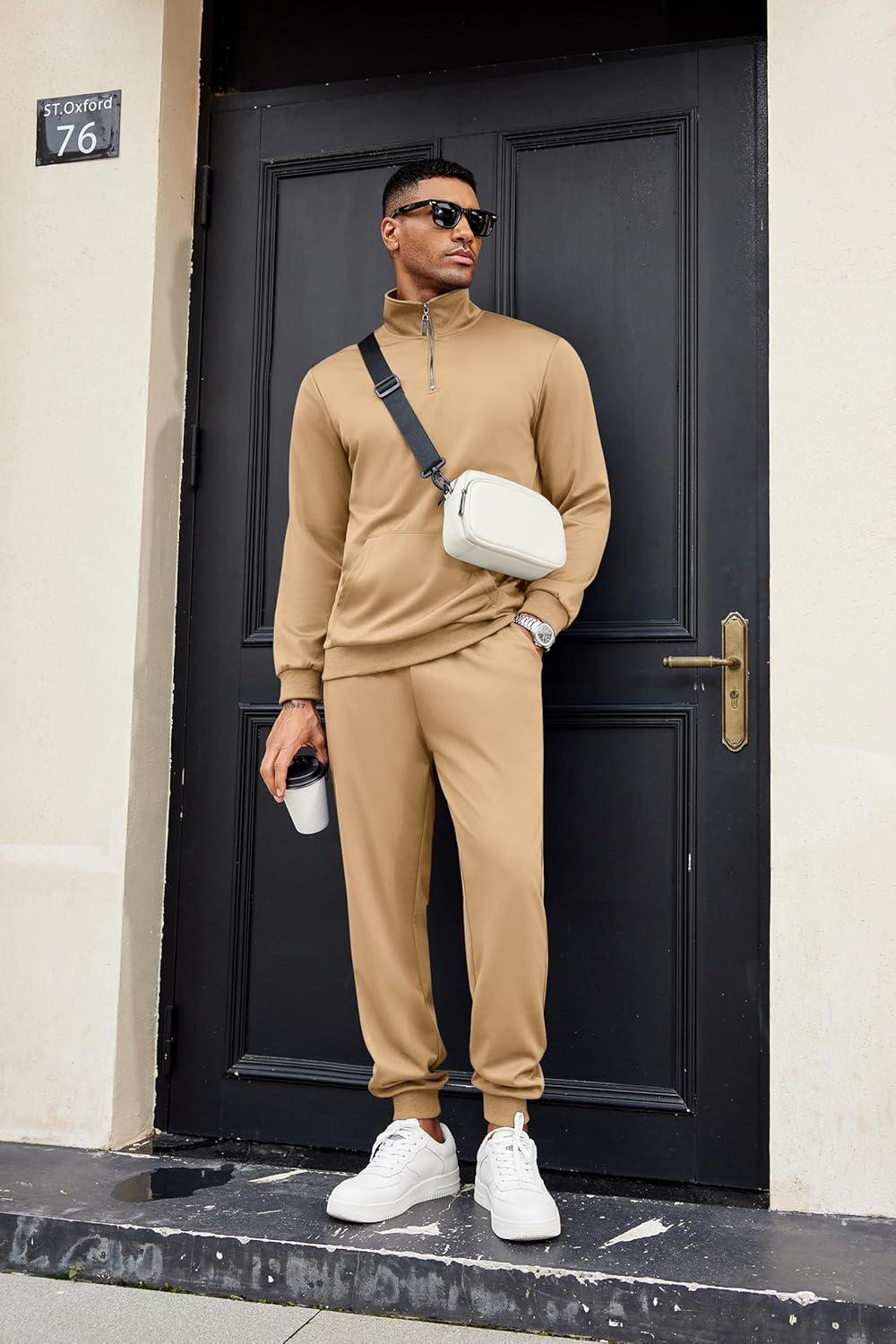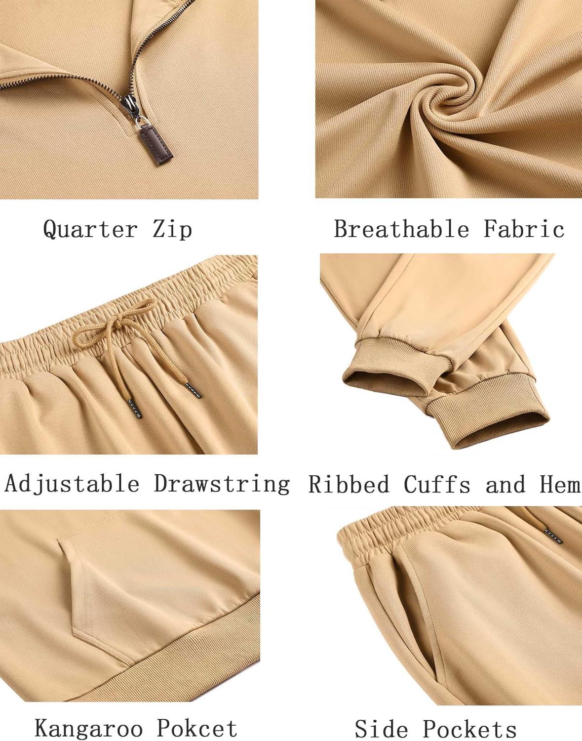 COOFANDY Men’s Tracksuit 2 Piece Quarter Zip Sweatsuit Sets Casual Athletic Running Jogging Suits(Khaki)