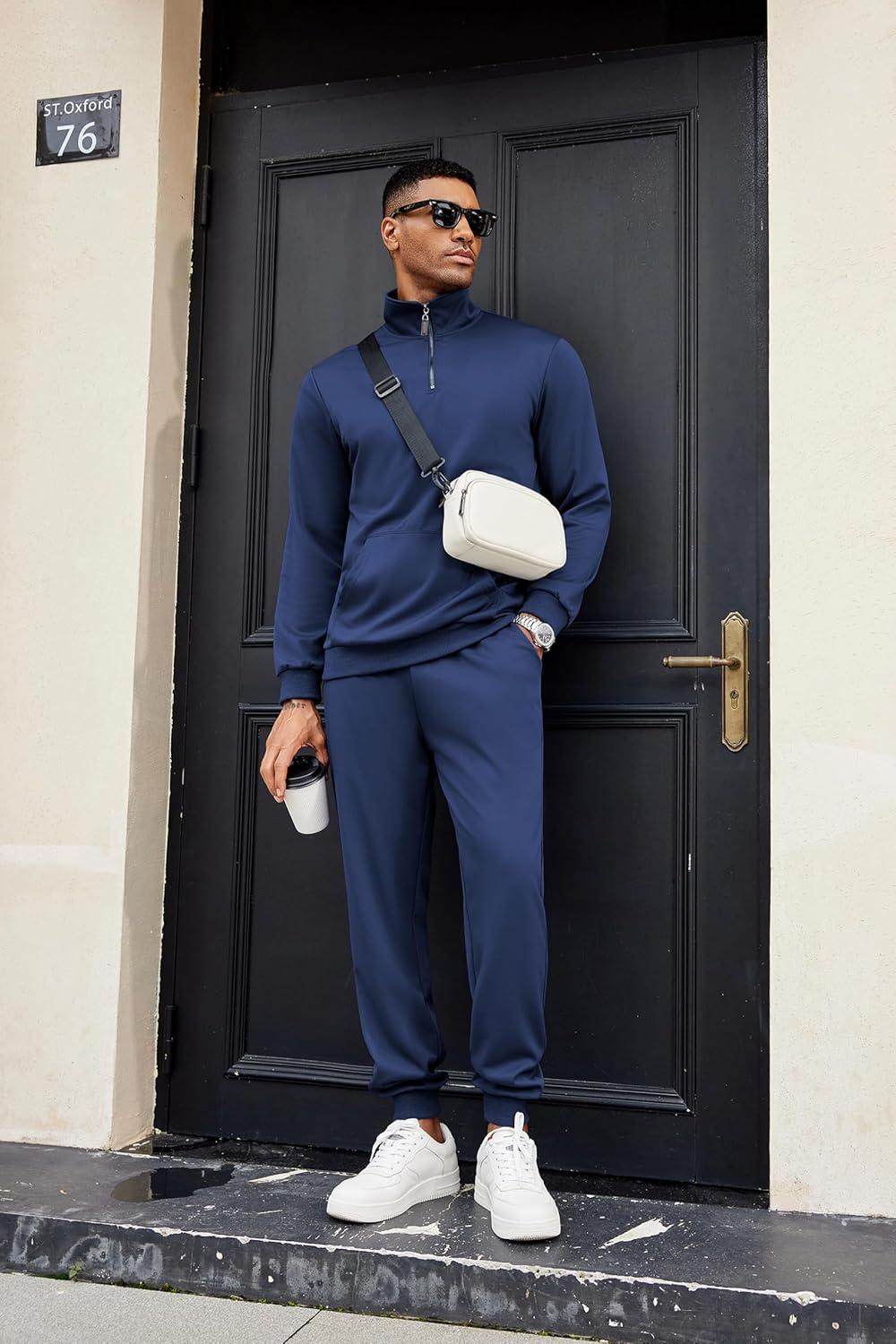 COOFANDY Men’s Tracksuit 2 Piece Quarter Zip Sweatsuit Sets Casual Athletic Running Jogging Suits(Navy Blue)