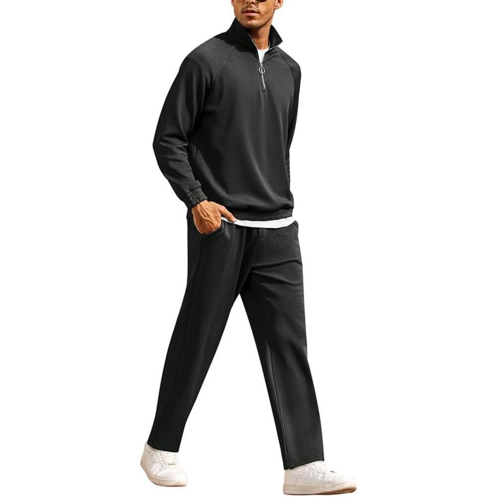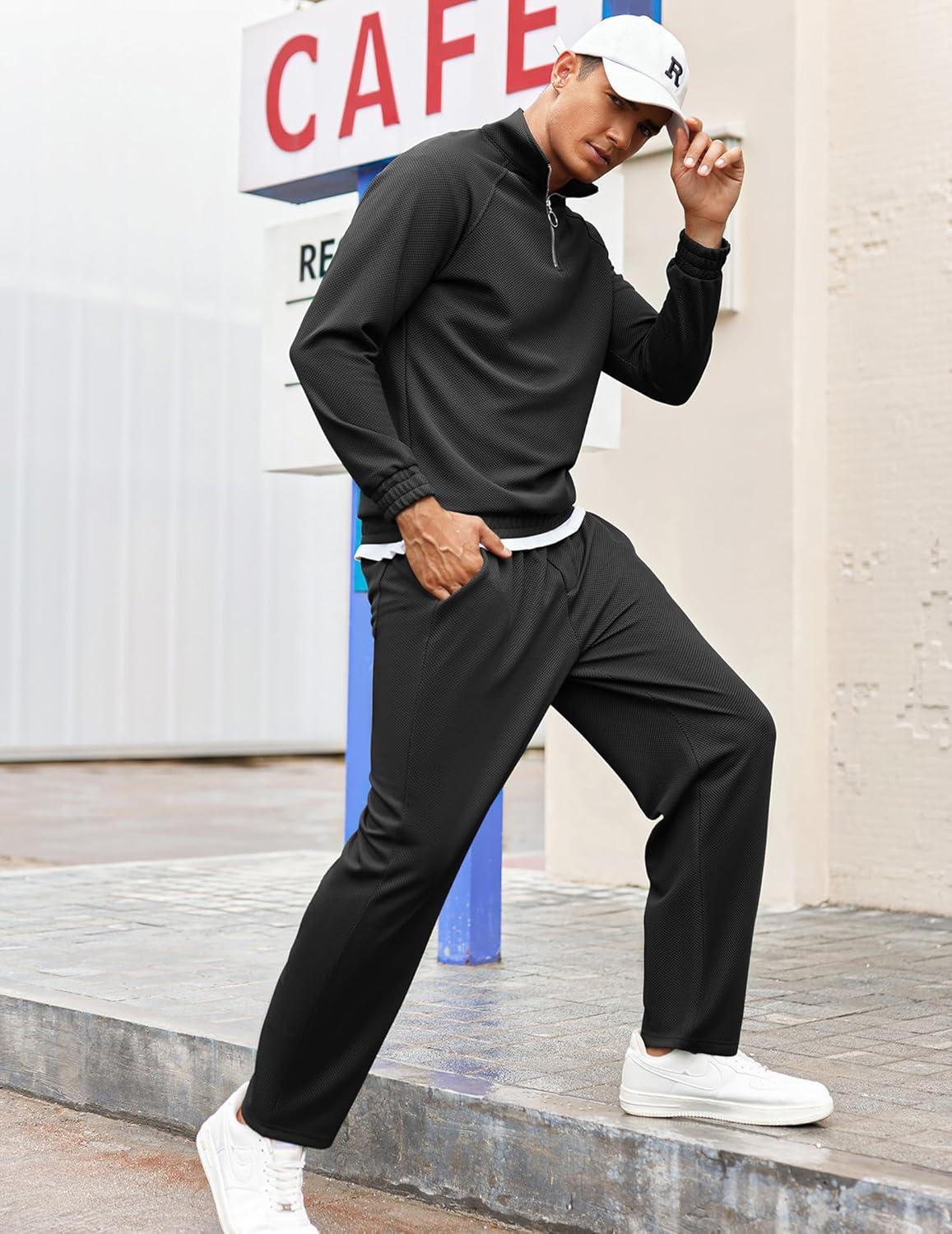 COOFANDY Men’s Tracksuit 2 Piece Relaxed Fit Half-zip Sweatsuits Athletic Running Jogging Suit Sets(Black)