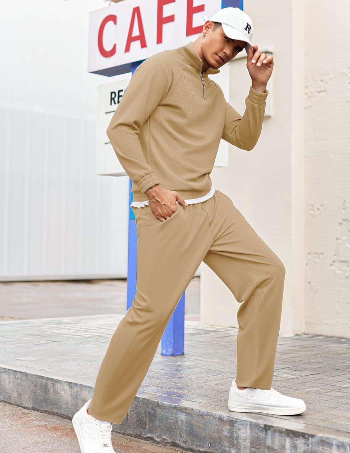 COOFANDY Men’s Tracksuit 2 Piece Relaxed Fit Half-zip Sweatsuits Athletic Running Jogging Suit Sets(Khaki)
