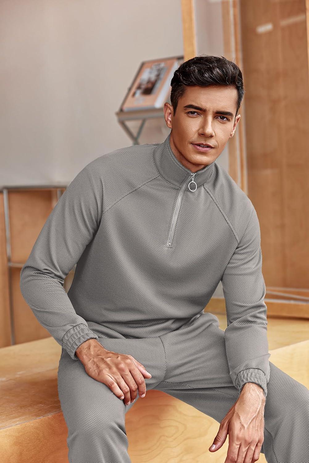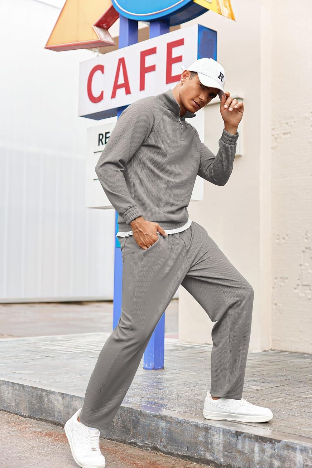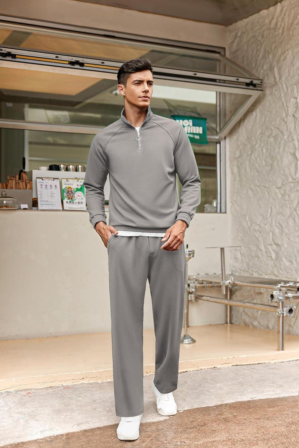 COOFANDY Men’s Tracksuit 2 Piece Relaxed Fit Half-zip Sweatsuits Athletic Running Jogging Suit Sets(Light Grey)