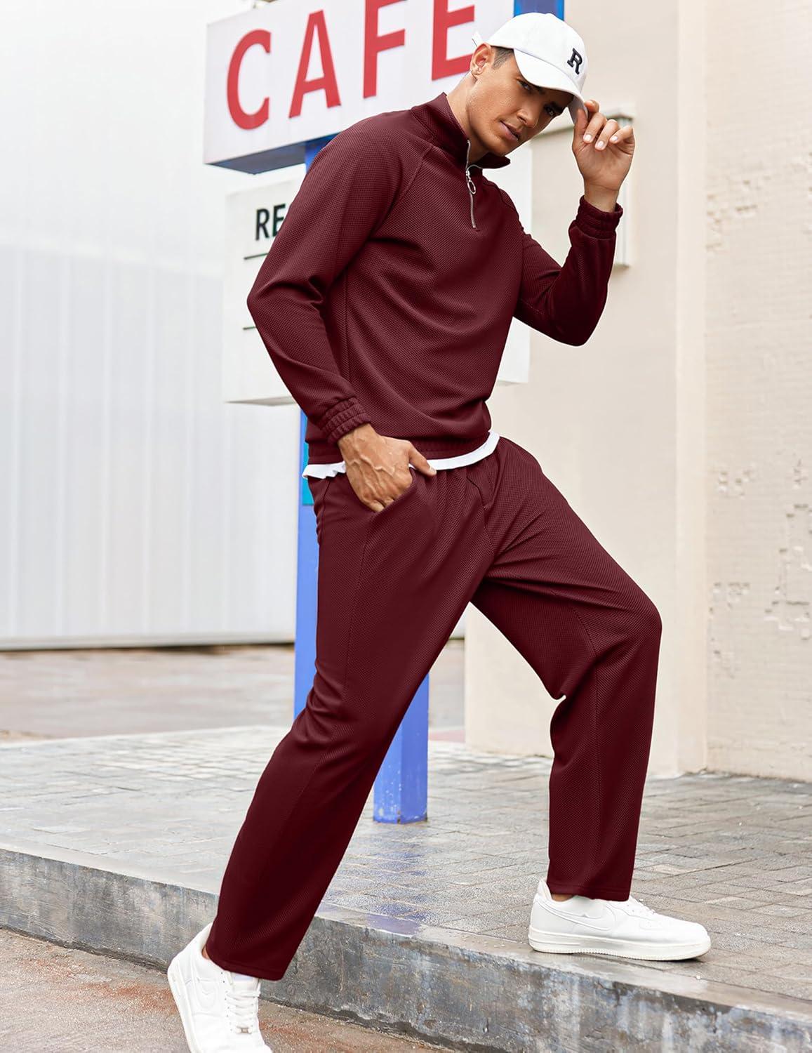 COOFANDY Men’s Tracksuit 2 Piece Relaxed Fit Half-zip Sweatsuits Athletic Running Jogging Suit Sets(Wine Red)