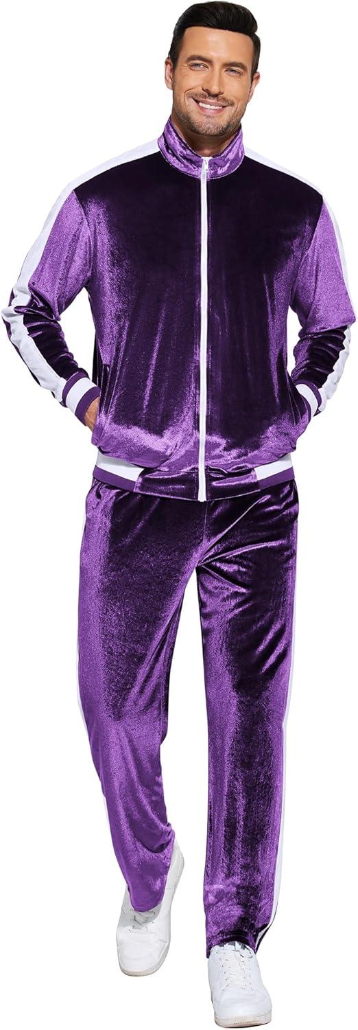 COOFANDY Mens Tracksuit 2 Piece Set Velour Sweatsuit Jogging Suits Full Zip Jacket Pants Outfits(Light Purple)