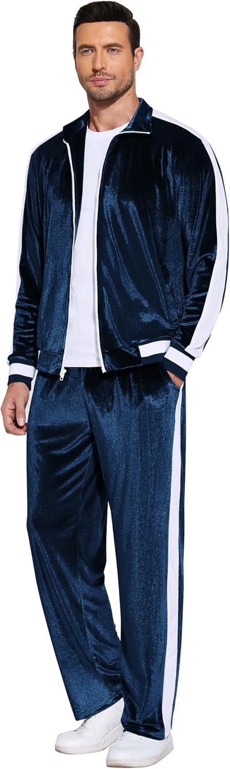 COOFANDY Mens Tracksuit 2 Piece Set Velour Sweatsuit Jogging Suits Full Zip Jacket Pants Outfits(Navy Blue)