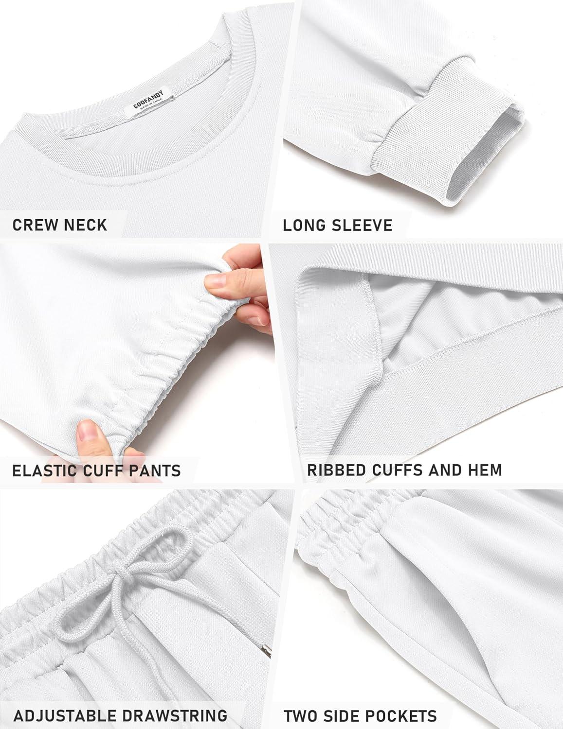 COOFANDY Men’s Tracksuit 2 Piece Sweatsuit Set Long Sleeve Pullover Athletic Suit For Sports Casual Fitness Jogging(White)