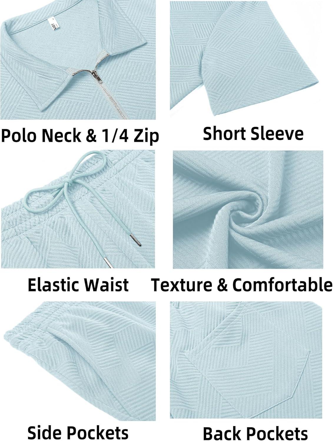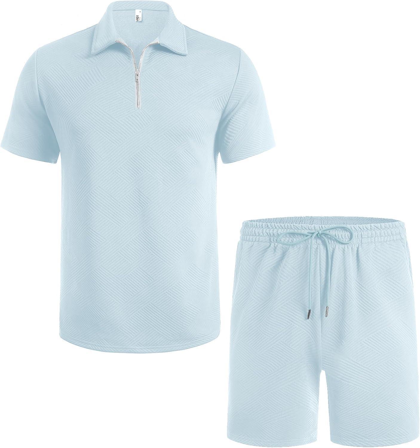 COOFANDY Mens Tracksuit Casual 2 Piece Quarter Zip Polo Shirt and Shorts Set Athletic Jogging Sports Outfits(Light Blue)