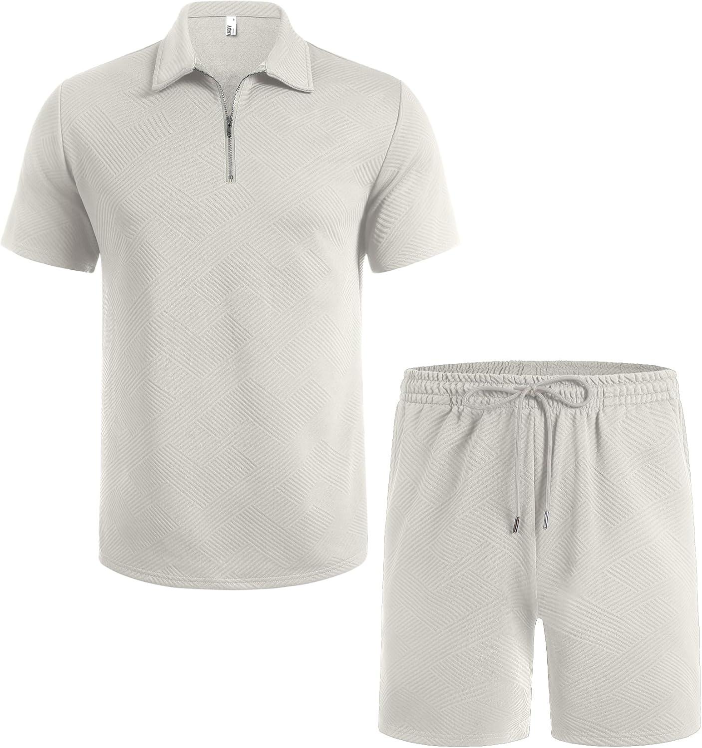 COOFANDY Mens Tracksuit Casual 2 Piece Quarter Zip Polo Shirt and Shorts Set Athletic Jogging Sports Outfits(Light Grey)
