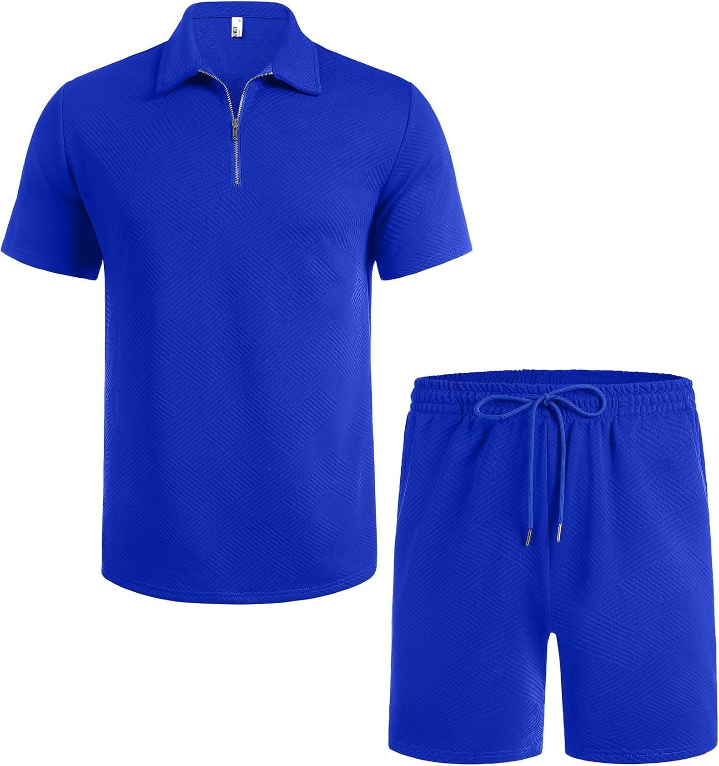 COOFANDY Mens Tracksuit Casual 2 Piece Quarter Zip Polo Shirt and Shorts Set Athletic Jogging Sports Outfits(Sapphire)