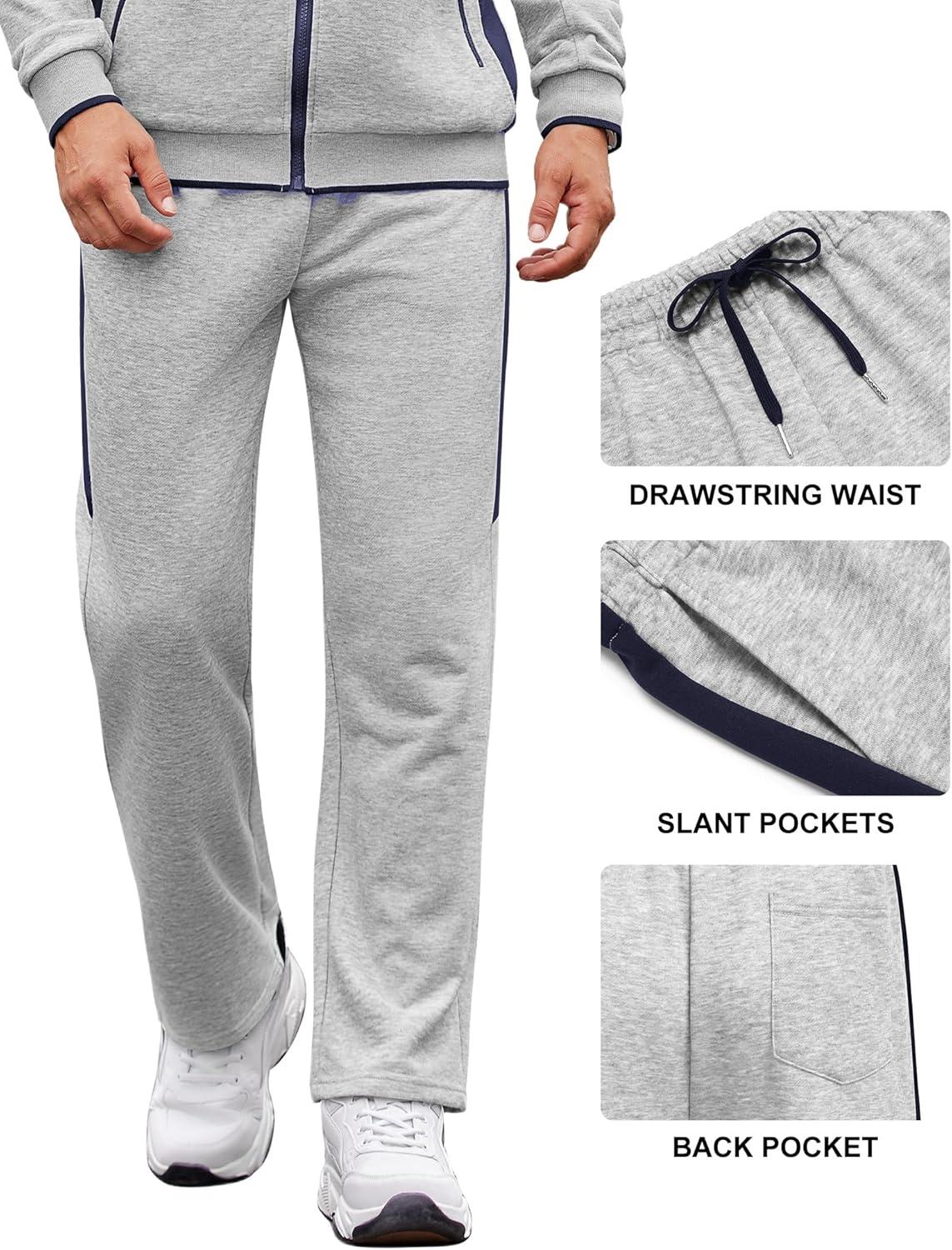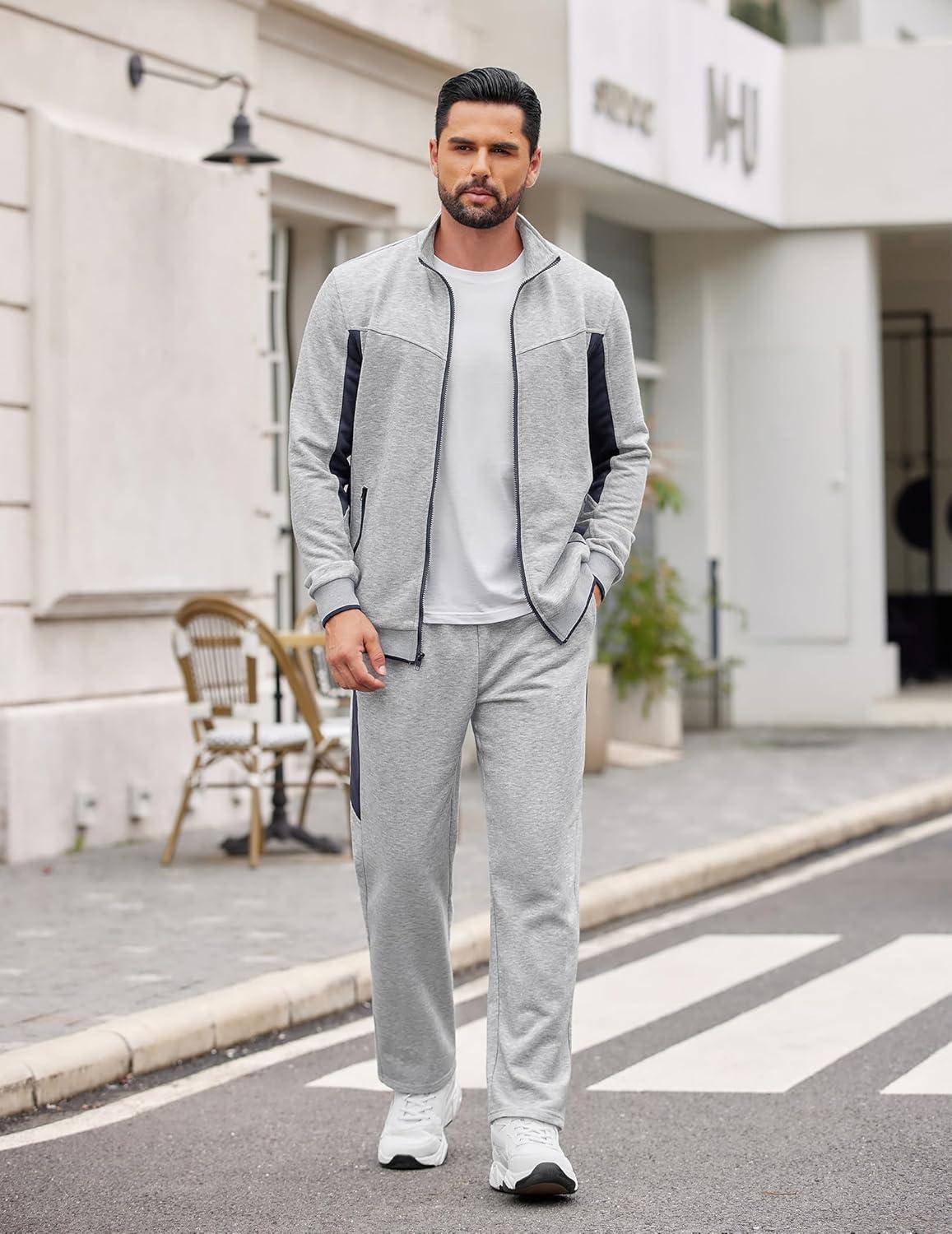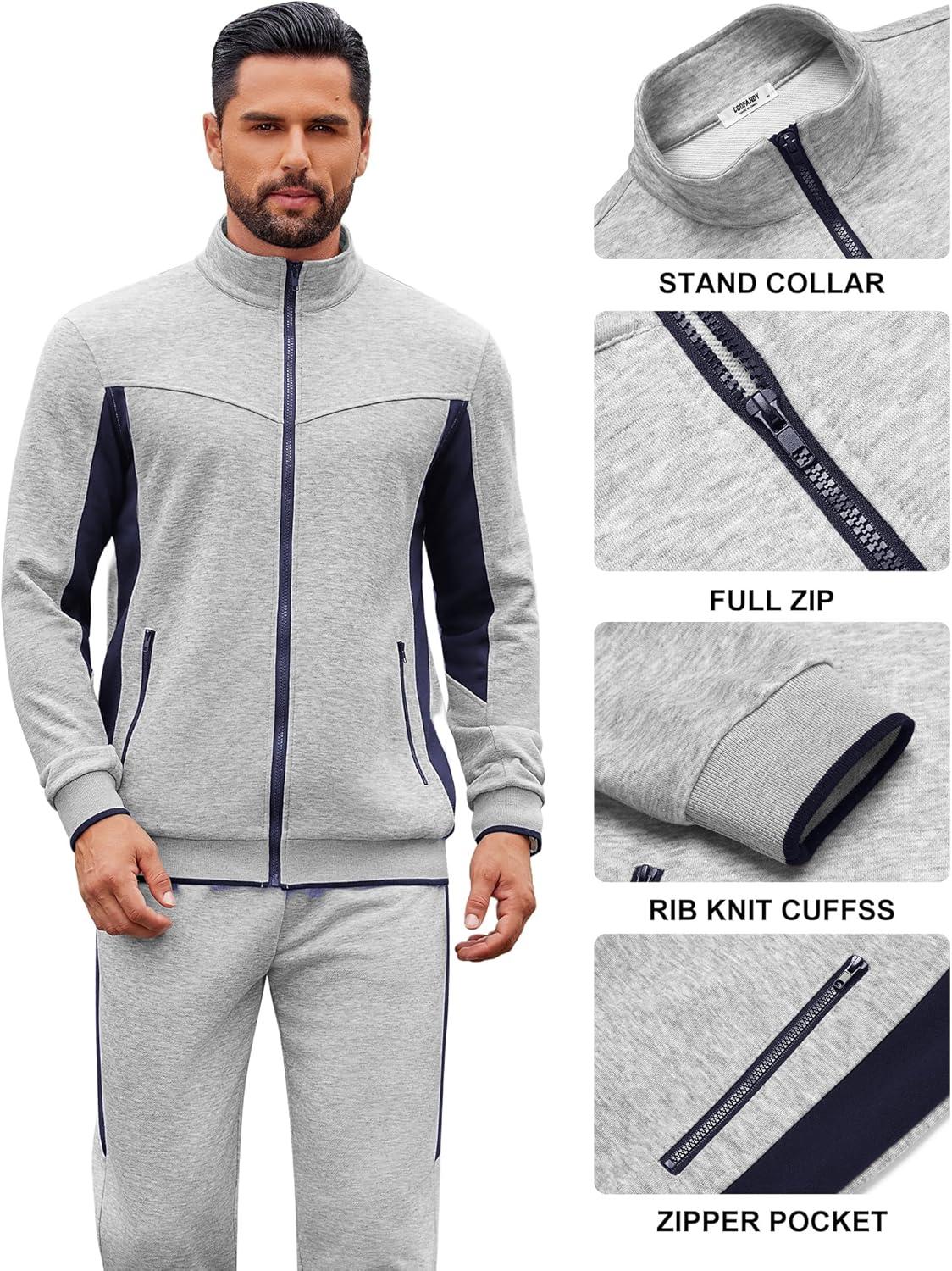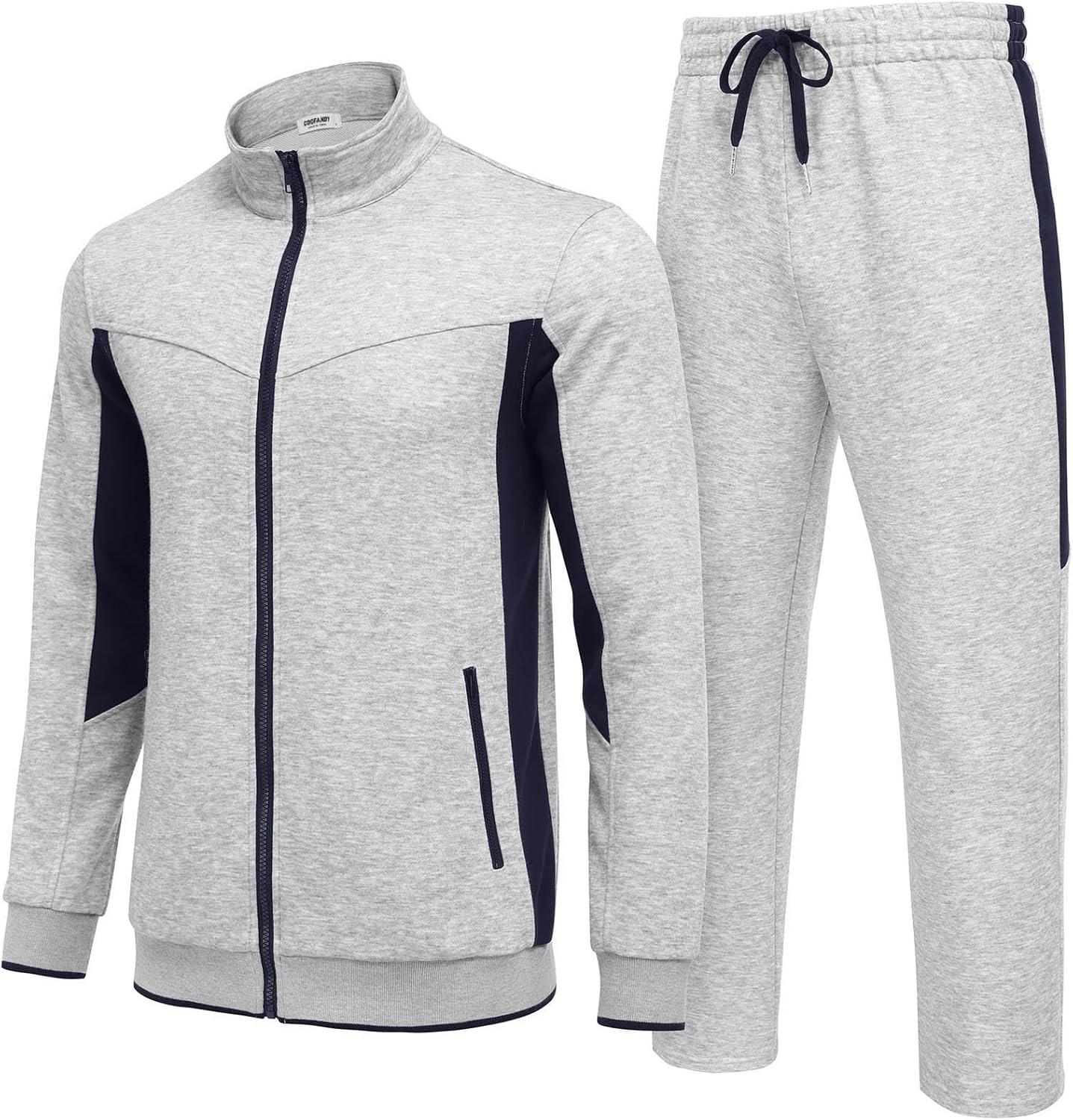 COOFANDY Men’s Tracksuits 2 Piece Athletic Track Suit Jogging Casual Sweatsuits Warm Running Zip Up Sports Set Outfits(Light Grey+navy Blue)
